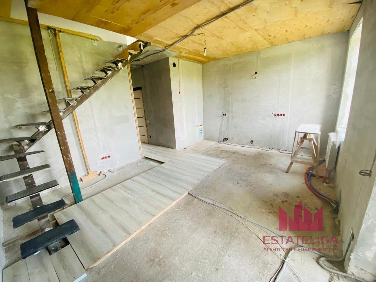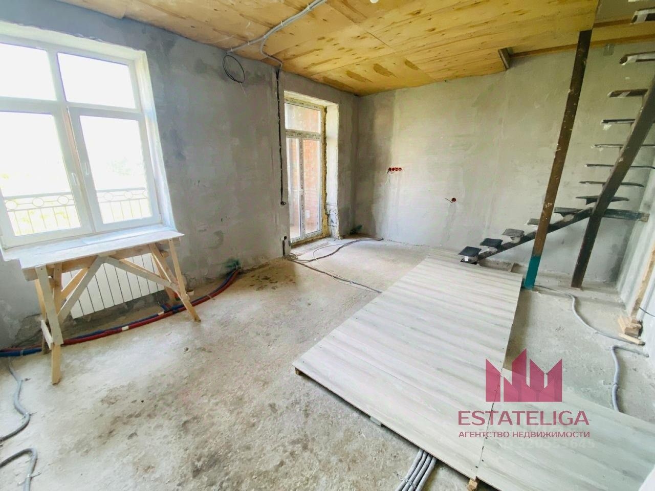 Выполнены все черновые работы - электрика, отопление, оштукатуривание стен , так же есть проект примерной планировки. Делалось все под себя из качественных материалов.