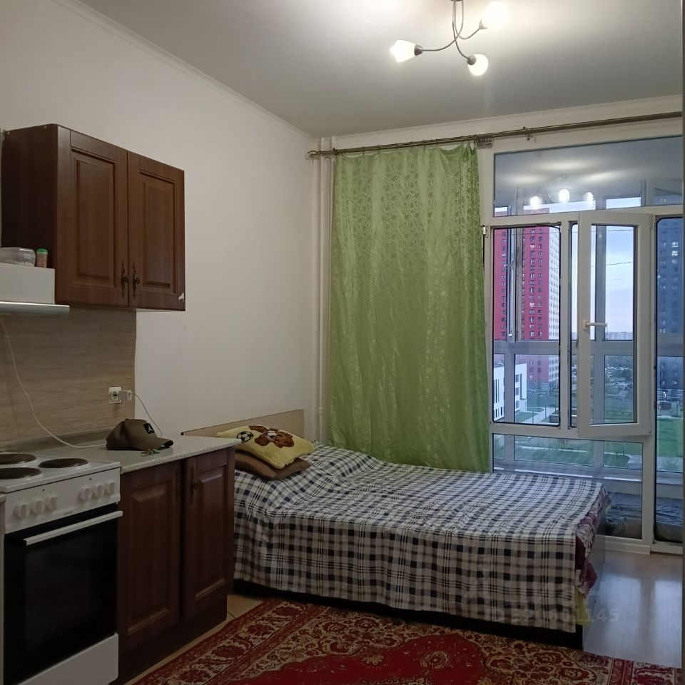 Сдается студия с лоджией. Чистая, аккуратная студия с ремонтом в светлых тонах. Панорамные окна в пол. Все есть для жизни: двуспальная КРОВАТЬ, вместительный шкаф, комод, кухонный гарнитур, стол, стулья, стиральная машина, холодильник, мебель в прихожей.. Оплата по счетчикам. Депозит.