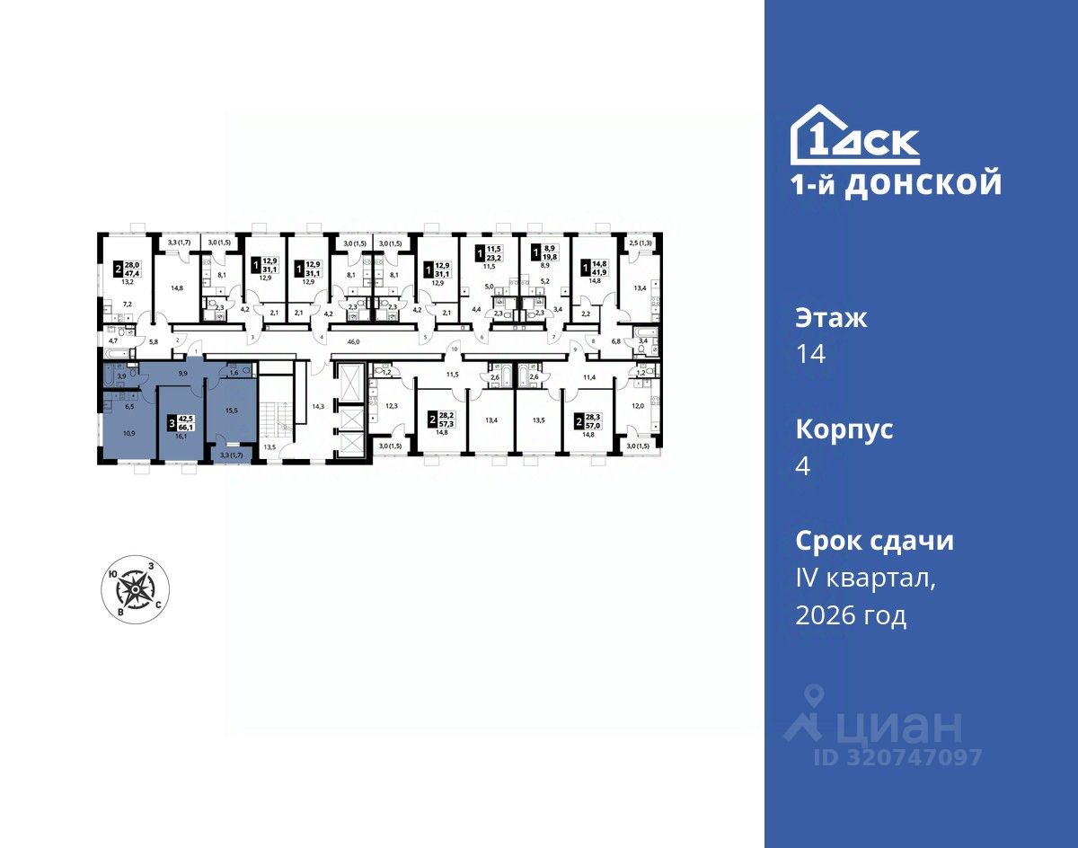 Общая площадь66,1 м2