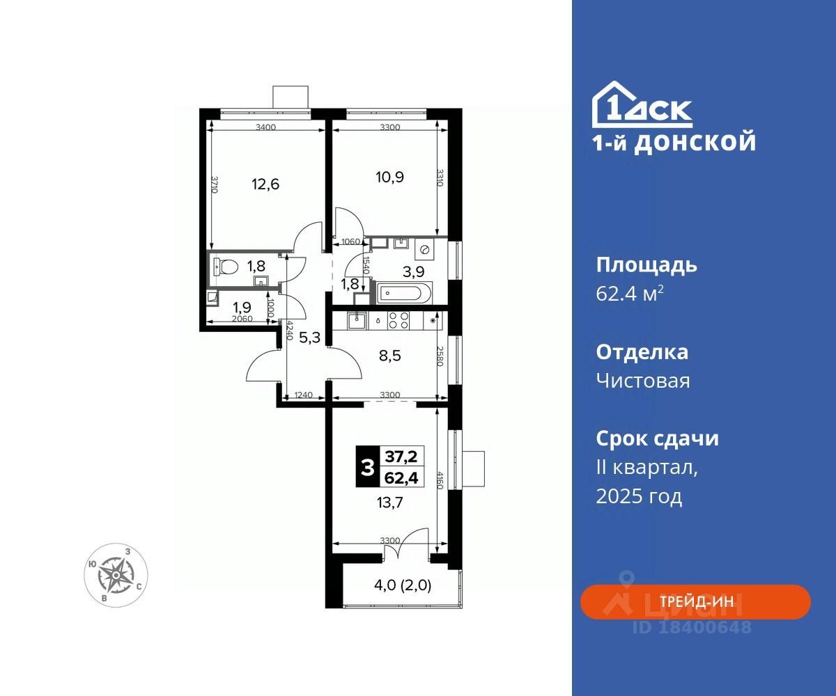 продам 3-к, пр-т-й Донской ЖК, 213 748 717 ₽