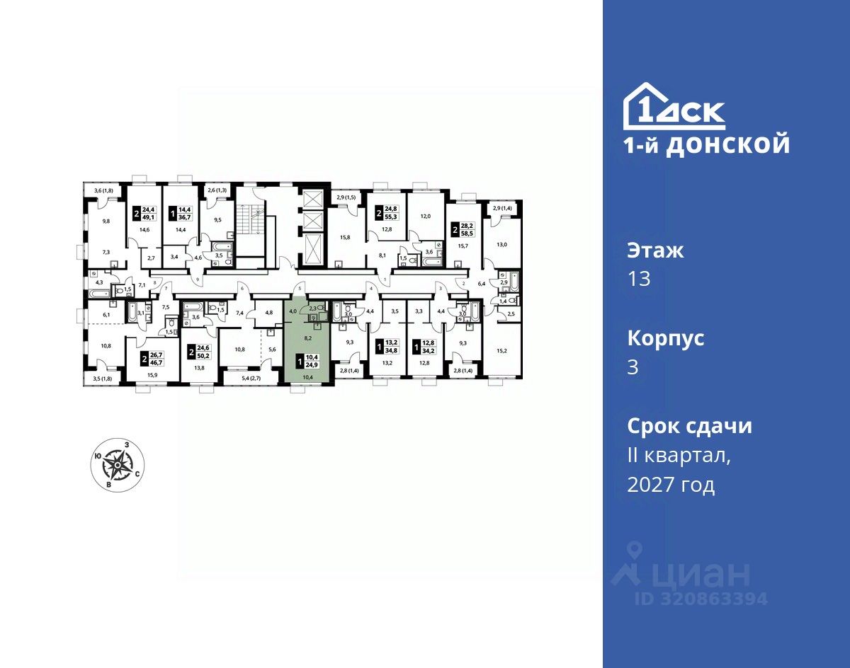 Максимальные скидки при 100% оплате. Trade-in вместо первоначального взноса - выгодно обменяйте вашу квартиру на новую! Прямая продажа от застройщика! Жилой Комплекс класса Комфорт плюс. Продаётся студия номер 840 общей площадью 24.9 кв.м на 13-м этаже 24 этажного дома. Отделка Whitebox.