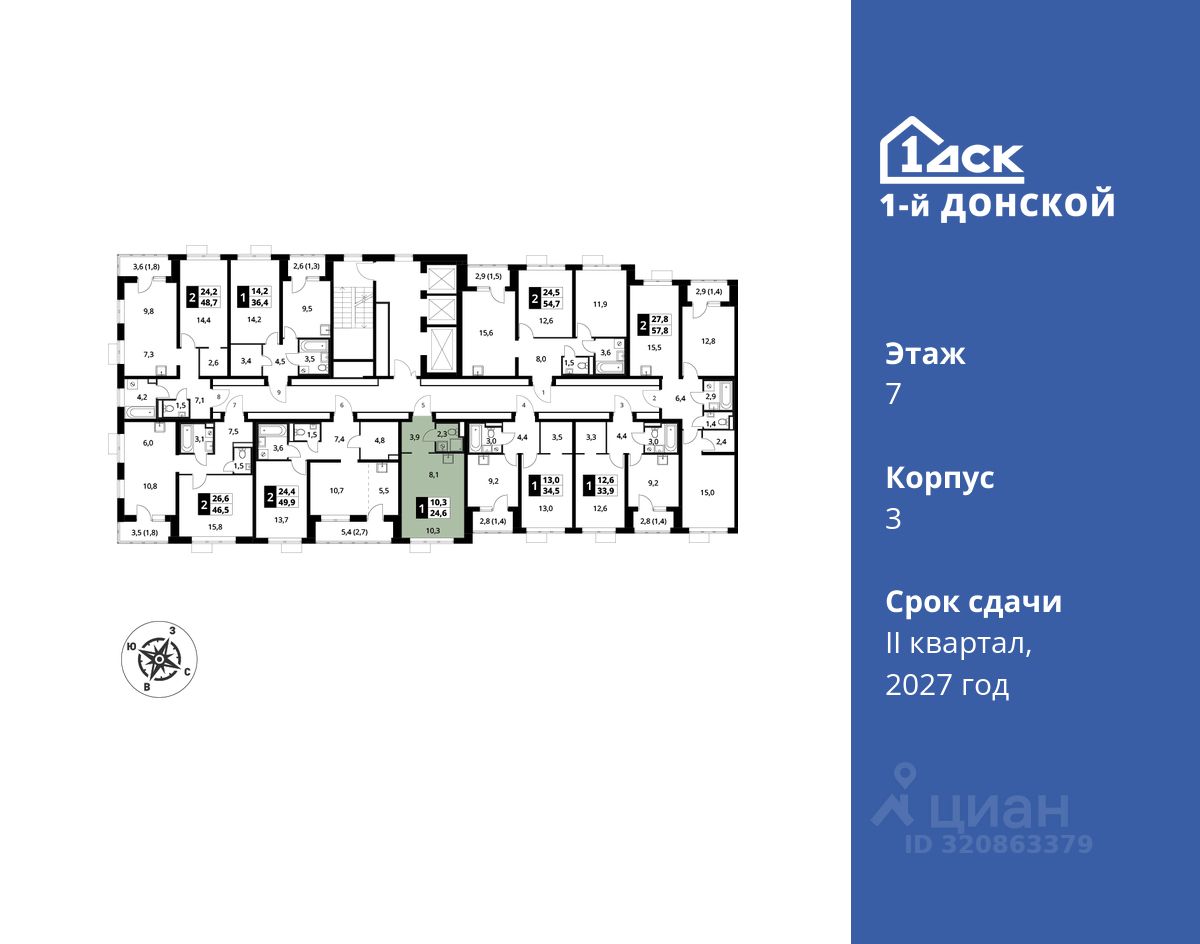 продам 1-к, пр-т-й Донской ЖК, 36 309 900 ₽