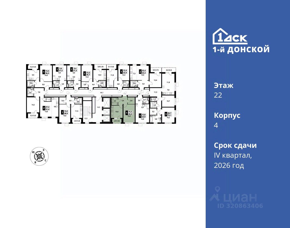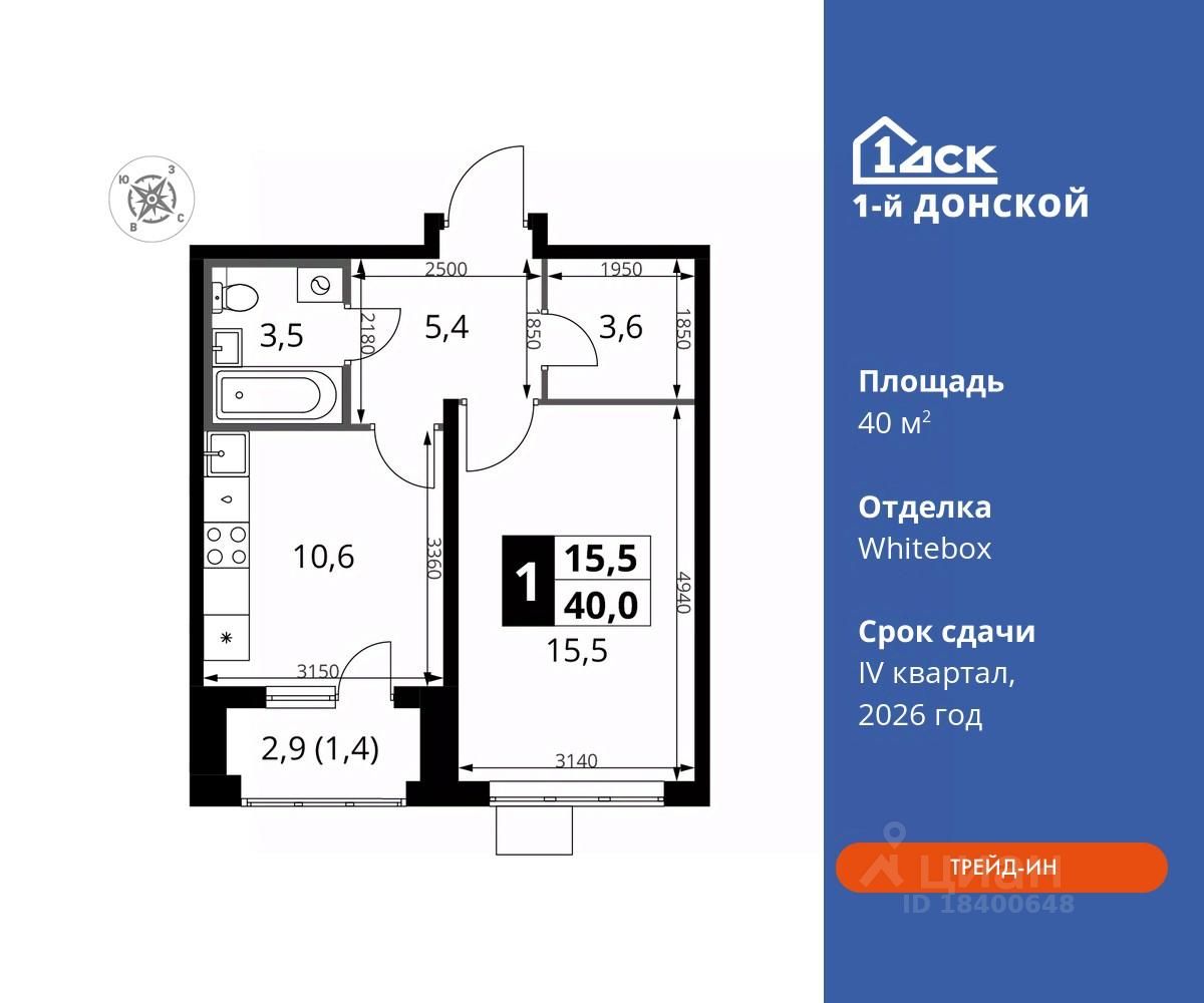 Максимальные скидки при 100% оплате. Trade-in вместо первоначального взноса - выгодно обменяйте вашу квартиру на новую! Прямая продажа от застройщика! Жилой Комплекс класса Комфорт плюс. Продаётся 1-к квартира номер 461 общей площадью 40 кв.м на 22-м этаже 24 этажного дома. Отделка Whitebox.