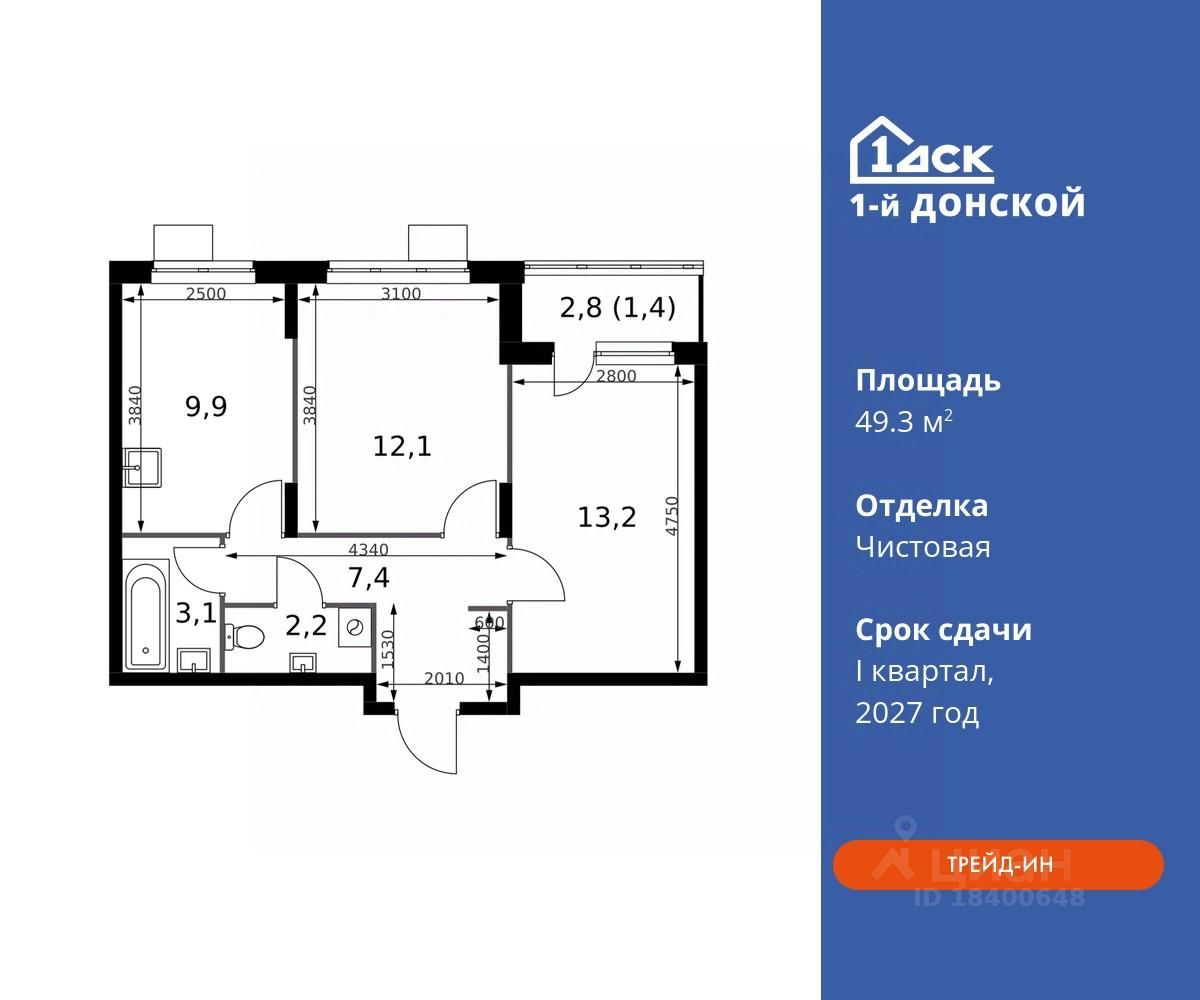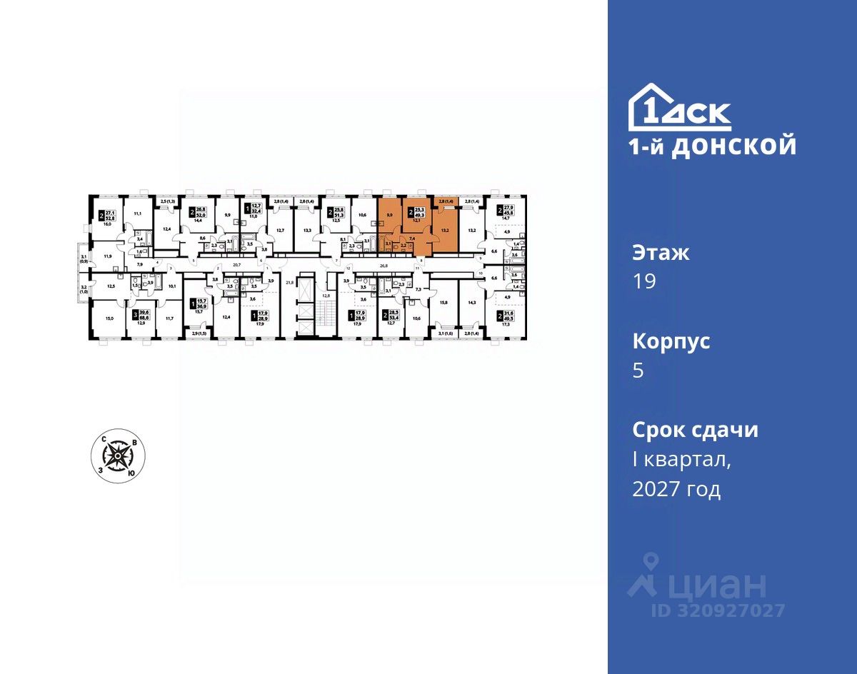 Общая площадь49,3 м2
