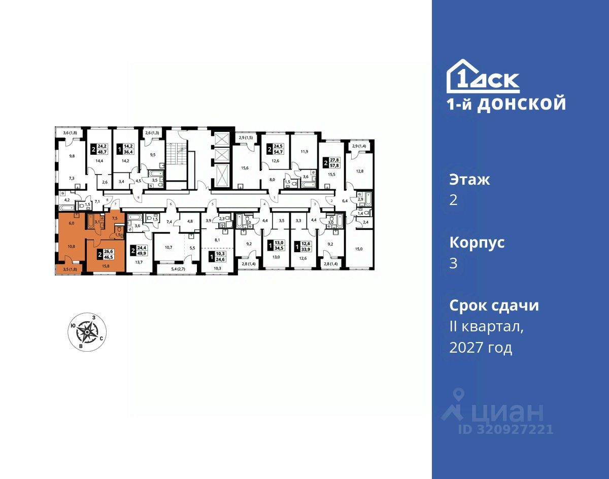 продам 2-к, пр-т-й Донской ЖК, 311 420 400 ₽