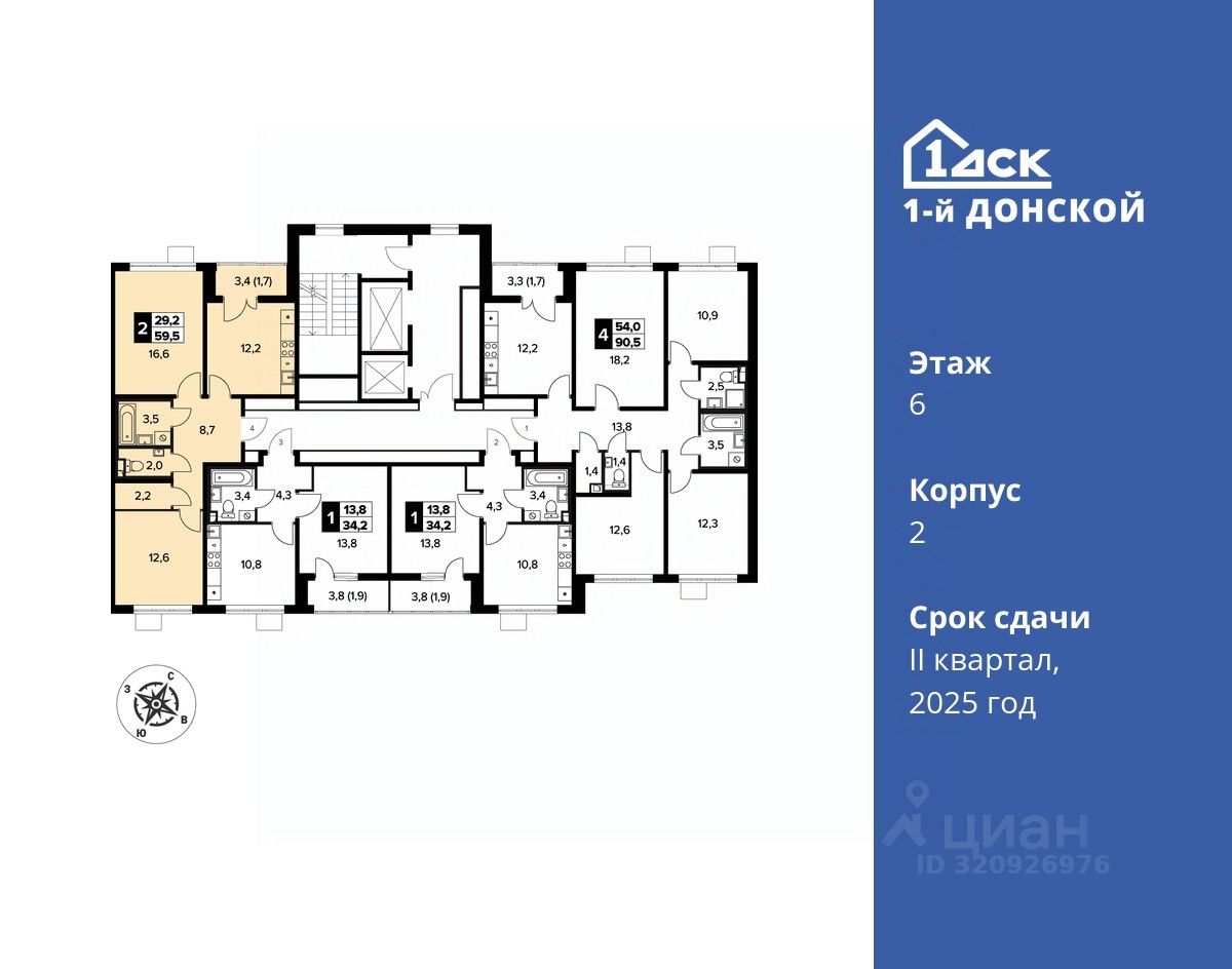 Максимальные скидки при 100% оплате. Trade-in вместо первоначального взноса - выгодно обменяйте вашу квартиру на новую! Корпус сдан! Прямая продажа от застройщика! Жилой Комплекс класса Комфорт плюс. Продаётся 2-к квартира номер 487 в сданном корпусе общей площадью 59.5 кв.м на 6-м этаже 12 этажного дома.