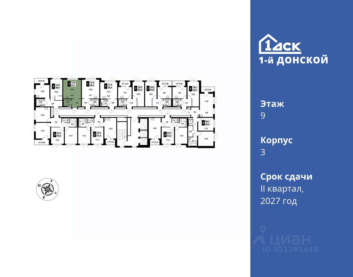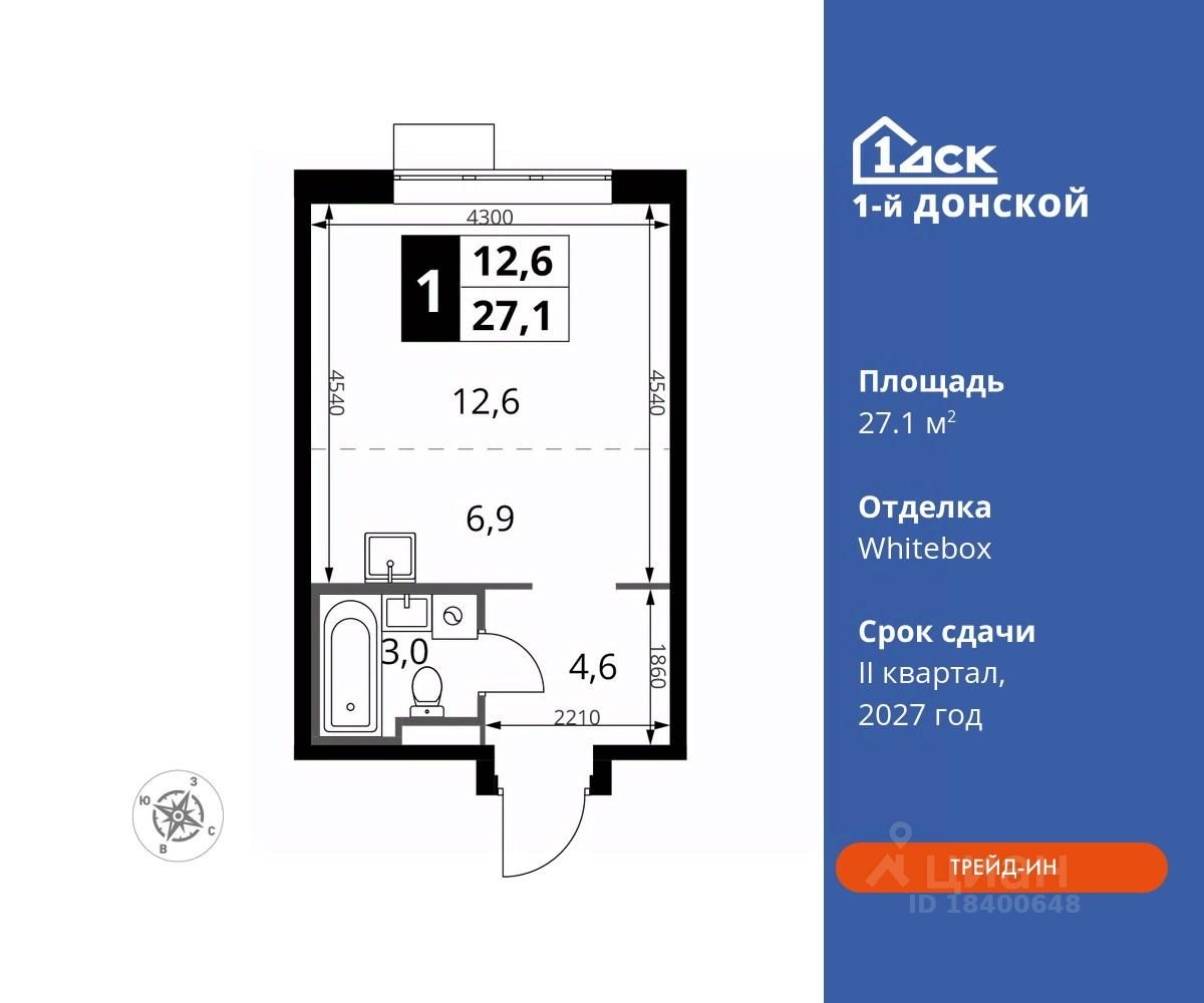 Максимальные скидки при 100% оплате. Trade-in вместо первоначального взноса - выгодно обменяйте вашу квартиру на новую! Прямая продажа от застройщика! Жилой Комплекс класса Комфорт плюс. Продаётся студия номер 81 общей площадью 27.1 кв.м на 9-м этаже 24 этажного дома. Отделка Whitebox.