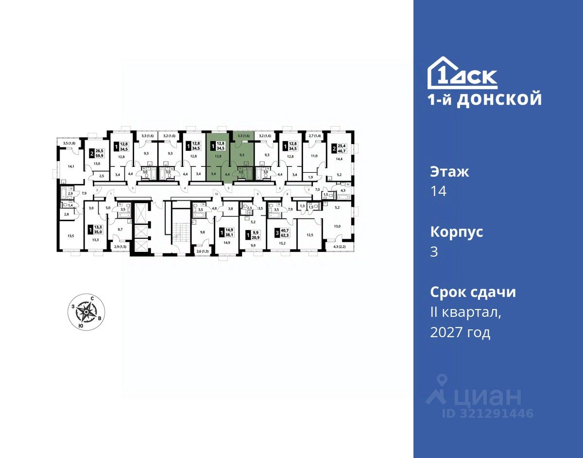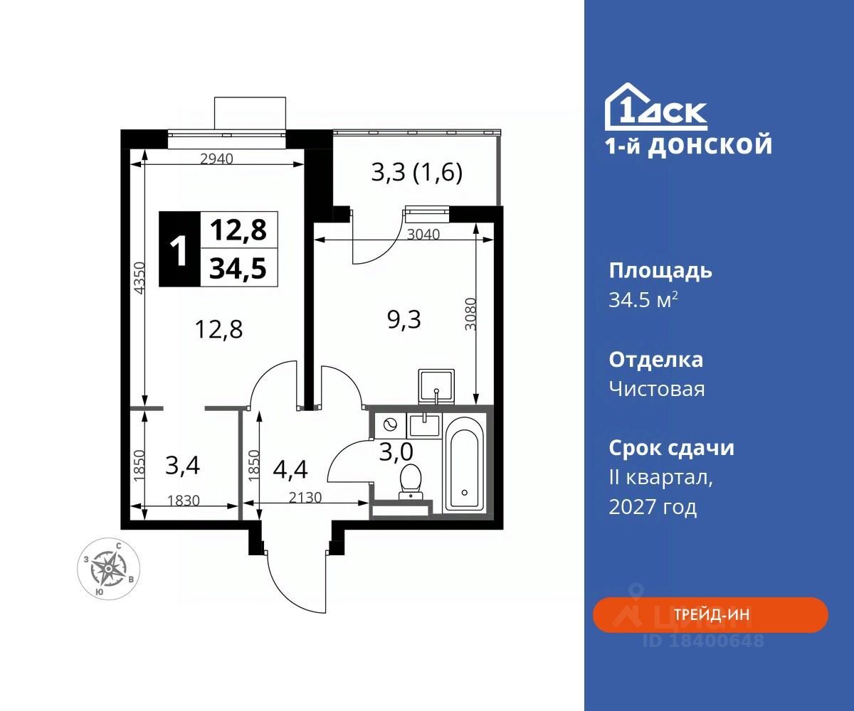 продам 1-к, пр-т-й Донской ЖК, 38 838 900 ₽
