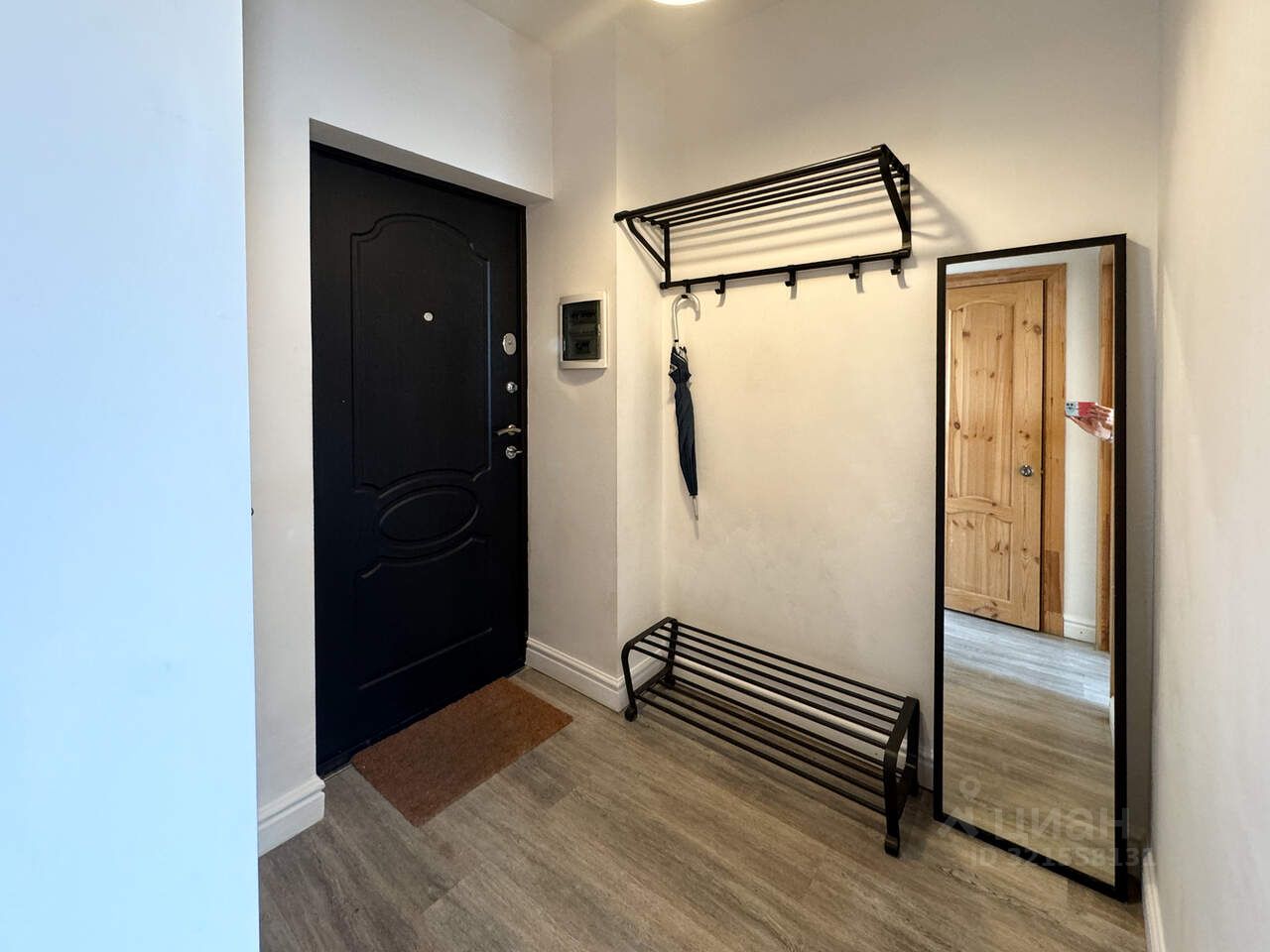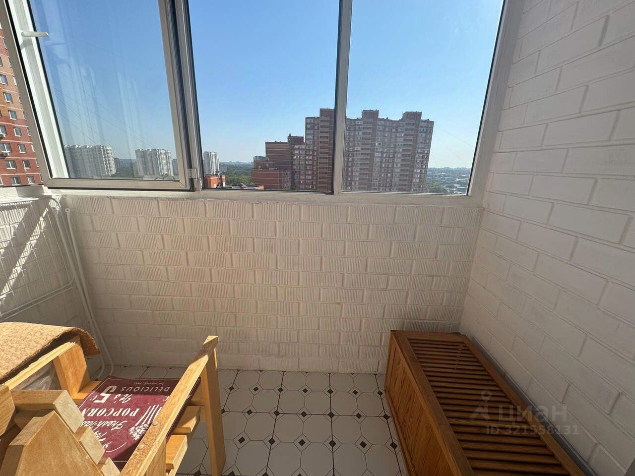на 18 этаже в ЖК ''Академический''. Белые стены, натуральная деревянная мебель,