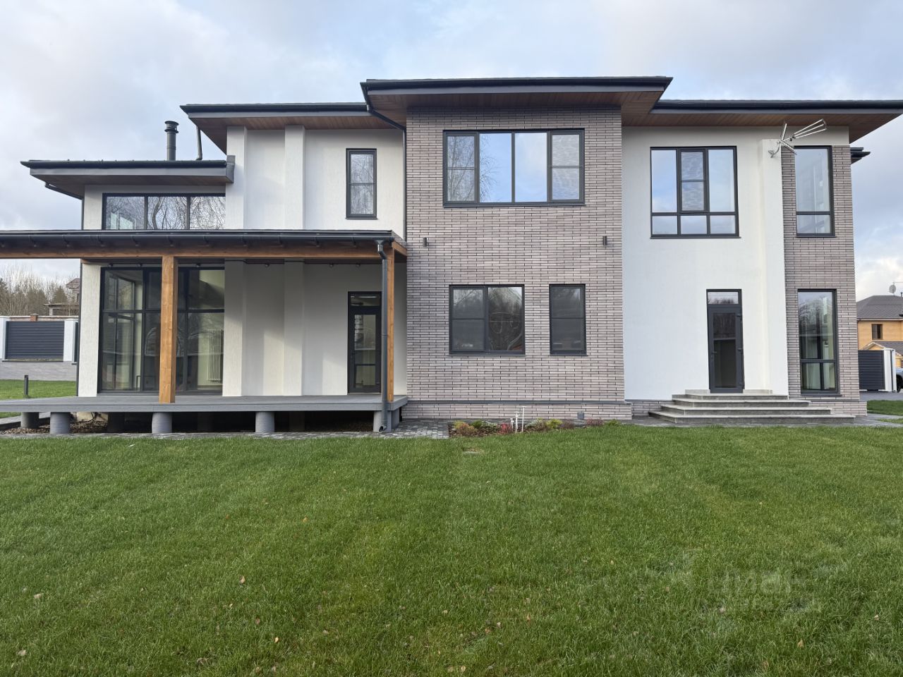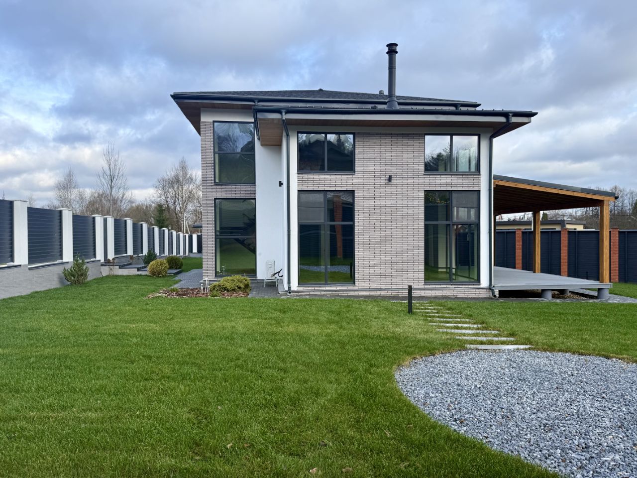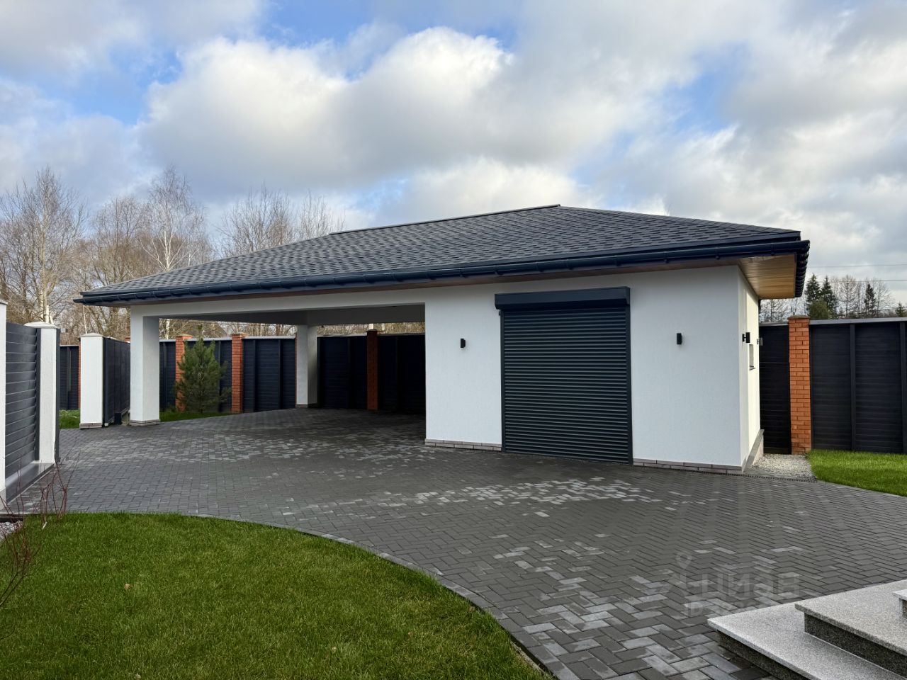 Участок: Благоустроенный участок 15 соток, Ландшафтное освещение, Автоматический полив, Видеонаблюдение, Навес на 2 автомобиля, Зарядка для эл.