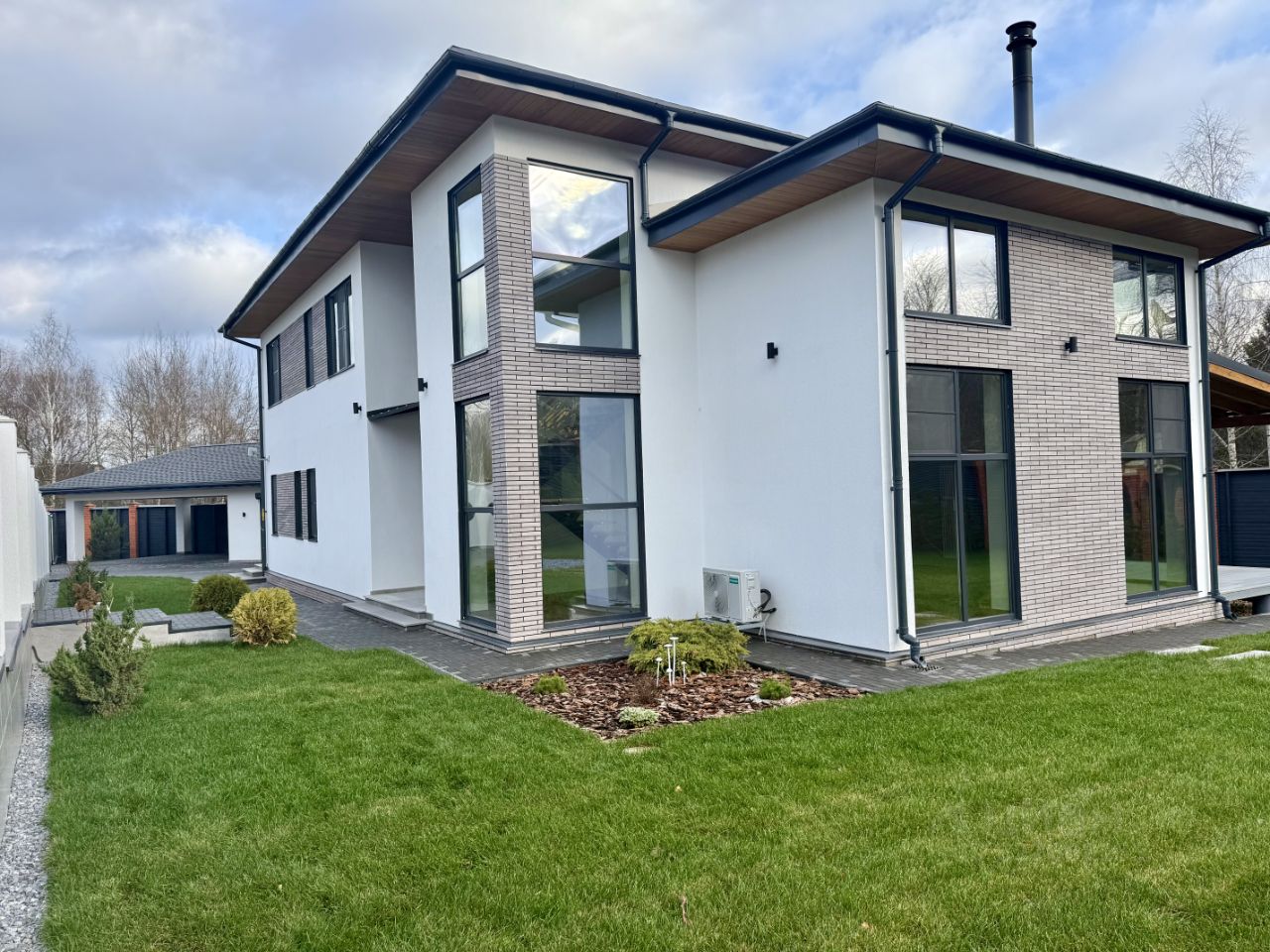 Участок: Благоустроенный участок 15 соток, Ландшафтное освещение, Автоматический полив, Видеонаблюдение, Навес на 2 автомобиля, Зарядка для эл.автомобиля 7 кВт, Хозблок 28м2 для хранения не сезонных вещей,