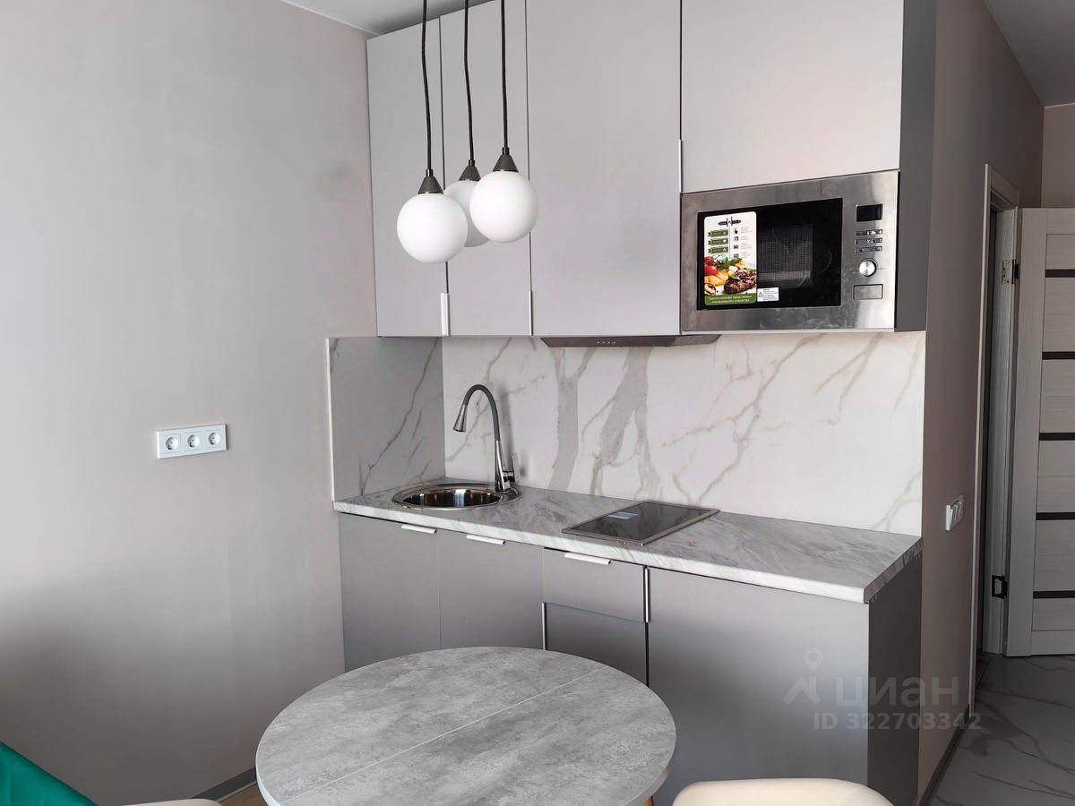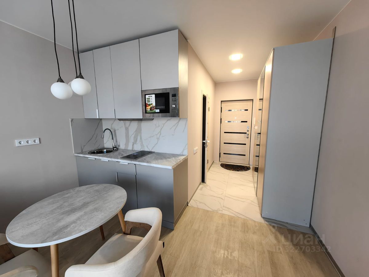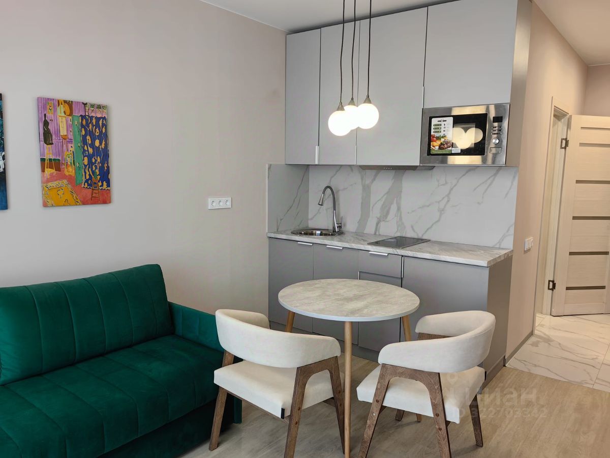 Студия укомплектована новой мебелью и бытовой техникой, в том числе посудомоечной машиной, встроенная печь СВЧ. Установлен кондиционер с пониженным уровнем шума, WF роутер.