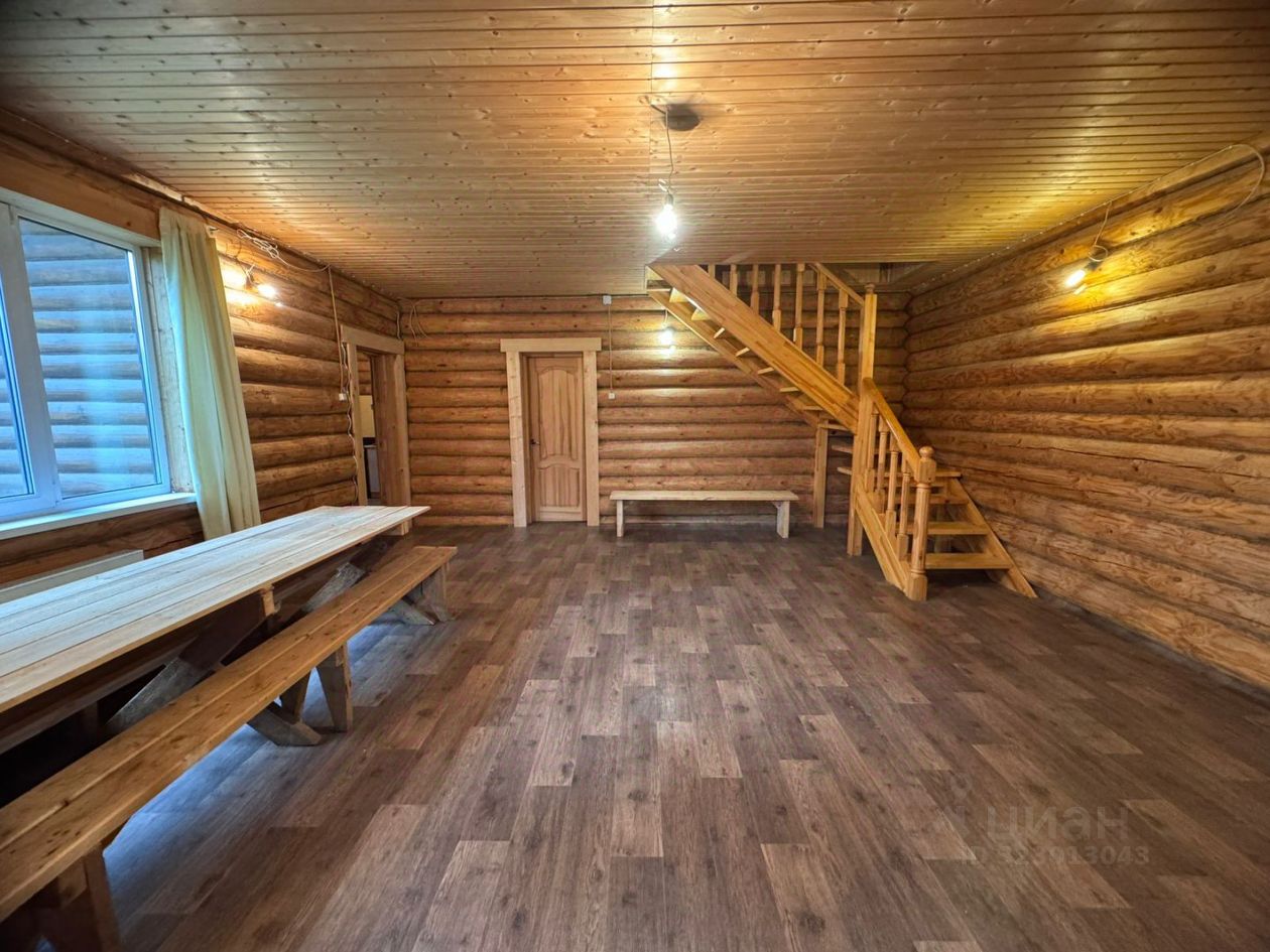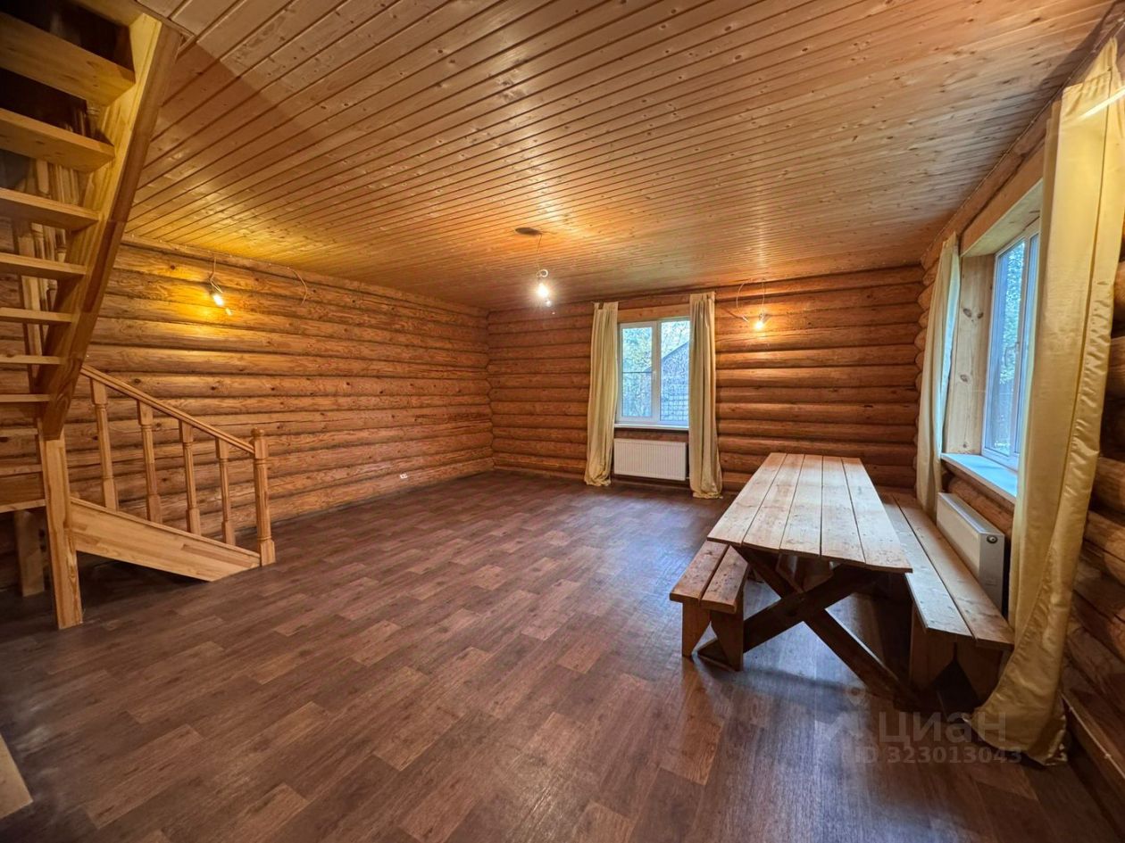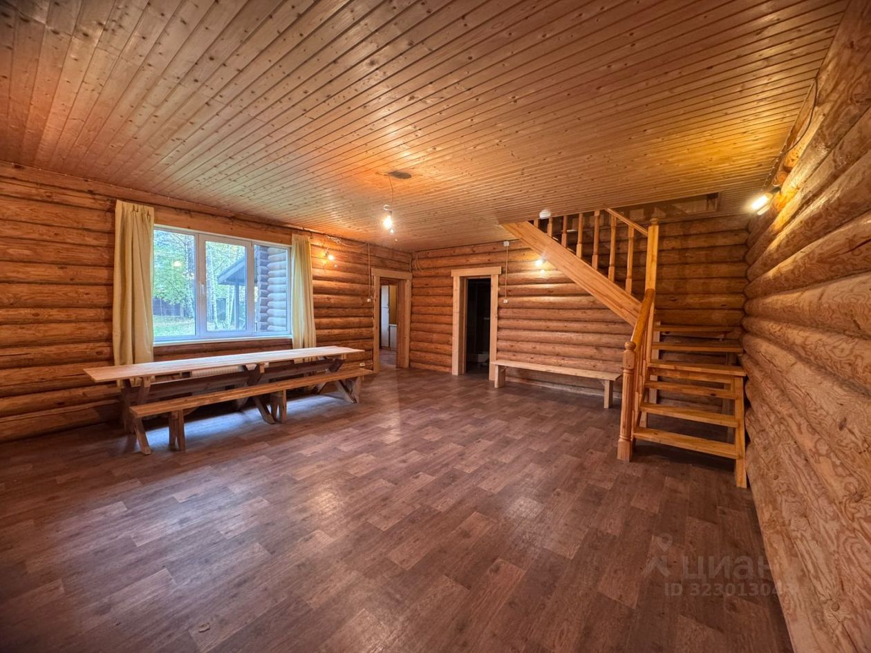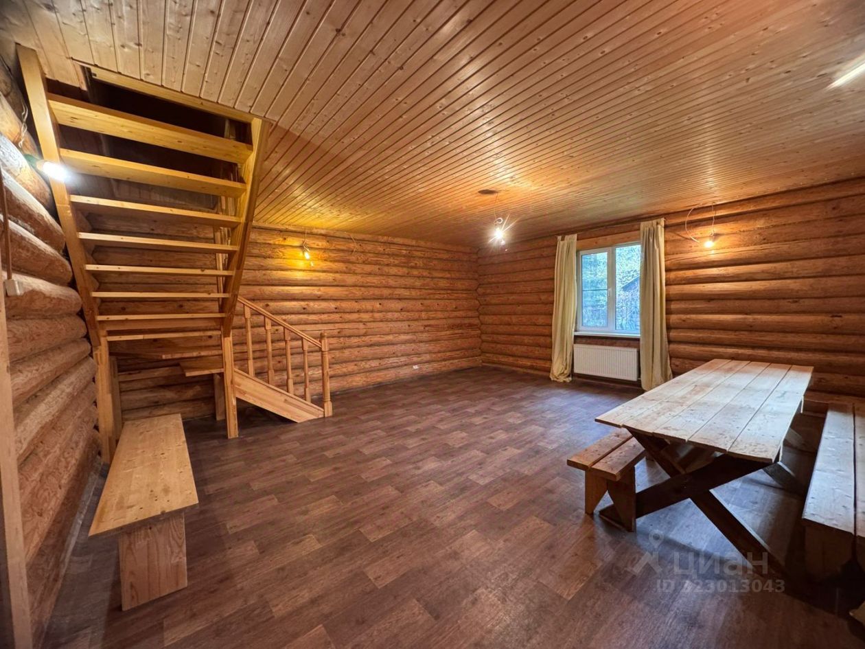 Основной дом 121 м² — уютный сруб с современным ремонтом: * Просторная гостиная с выходом на участок * 3 отдельные спальни на втором этаже * Большая лоджия для вечерних чаепитий * Все коммуникации: свет, вода, газ, канализация