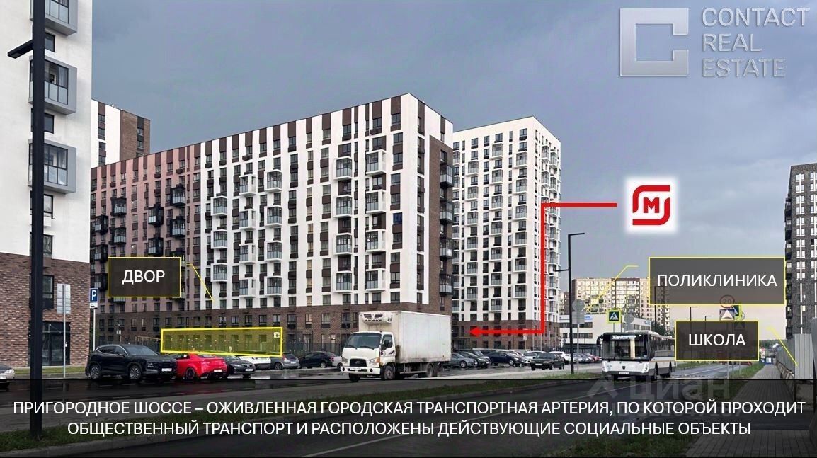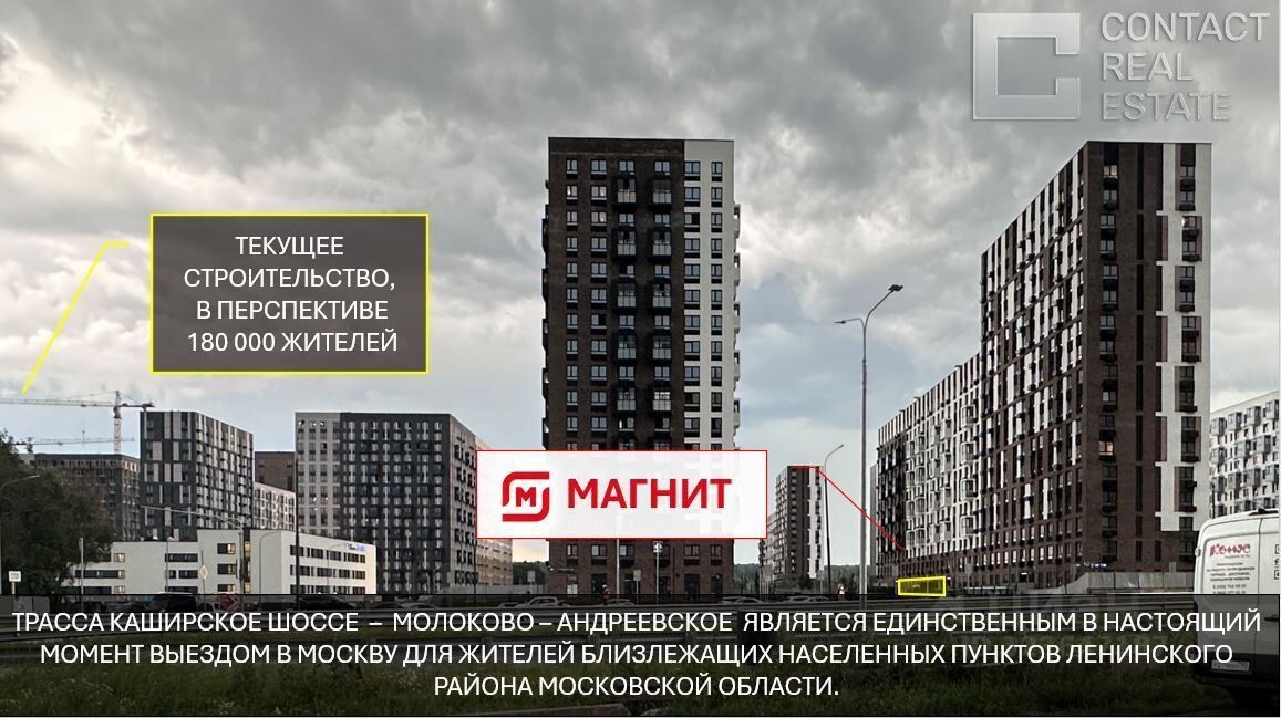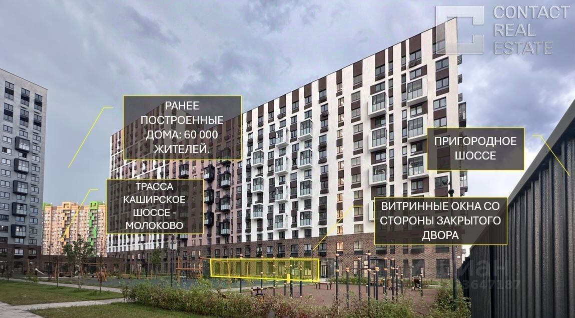 Помещение площадью 410 кв.м, находится на первой линии домов, в ЖК ''Пригород лесное'', интенсивный пешеходный и автомобильный трафик вдоль помещения.