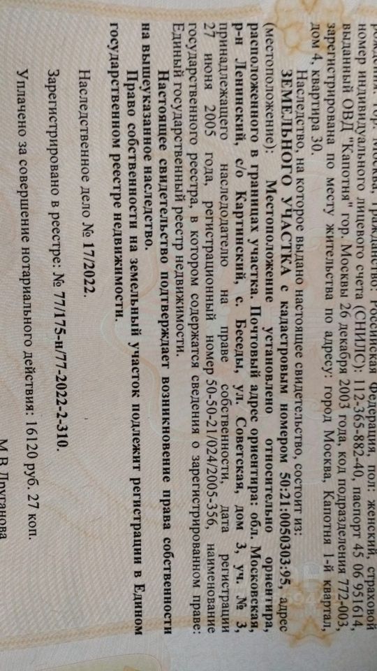 Продаётся уютный участок 5 соток в живописном селе Беседы! Адрес: ул. Советская, дом 3, уч. 3 Ваш собственный участок всего в 300 метрах от МКАД! Размер участка: ширина 5,5 метров, в длину 90 метров. Сделано свежее межевание, участок в границах. Строите дом и прописываетесь в нем!!! Этот ухоженный участок — идеальное место для тех, кто мечтает о загородной жизни с удобной транспортной доступностью и развитой инфраструктурой. Преимущества участка: Плодородная земля — есть место для грядок и посадки картофеля. Коммуникации — электричество на границе участка (подключение не займёт много времени). Полная ограждённость — забор по периметру обеспечивает приватность и безопасность. Отличная локация: Близко к Москве — всего 15 минут на автобусе до м. Домодедовская и 20 минут до м. Марьино. Удобный выезд на Домодедовскую трассу и Каширское шоссе через посёлок Развилка. Вся инфраструктура рядом — детский сад, школа, колледж, поликлиника и магазины в 5 минутах на машине. Почему стоит купить? Москва река рядом находится, прекрасное место для отдыха и рыбалки. Этот участок — редкая возможность жить в тихом, экологически чистом месте, не теряя связи с городом. Здесь вы сможете: Построить дом мечты или использовать землю для сельского хозяйства, а так же для складских помещений. Легко добираться до Москвы без пробок и стресса. Не упустите шанс стать владельцем этого прекрасного участка! Звоните прямо сейчас, чтобы узнать детали и записаться на просмотр! Лучше звоните, сообщение не на всех площадках отображаются.
