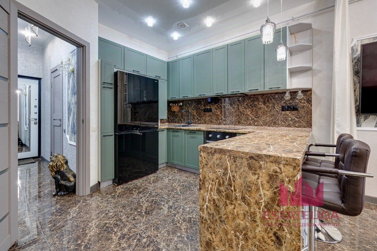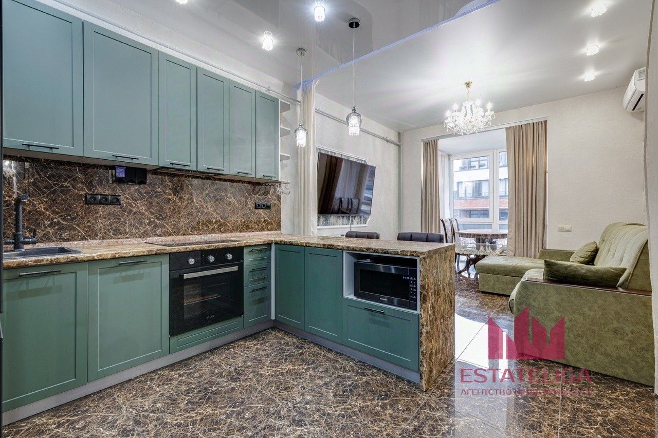 В квартире выполнен современный дизайнерский ремонт, качественная техника и мебель выполненная под заказ. Весь ремонт делался для себя.