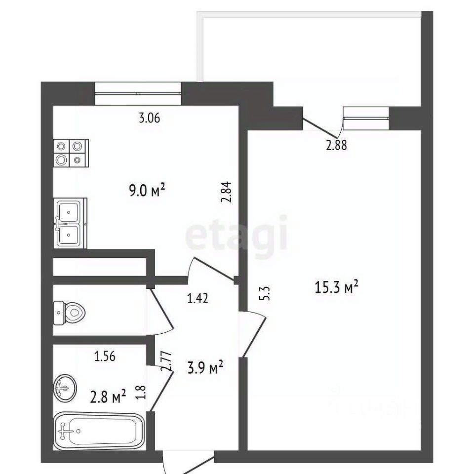 31,3 м² | 1 комната | 2 этаж (из 8)