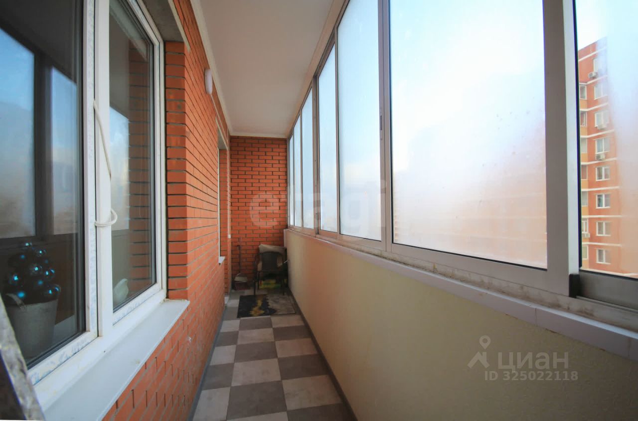 Нестандартная лоджия, длиной почти 7 метров, идеально подойдёт для размещения нескольких функциональных зон. Отличный вид на современные жилые комплексы