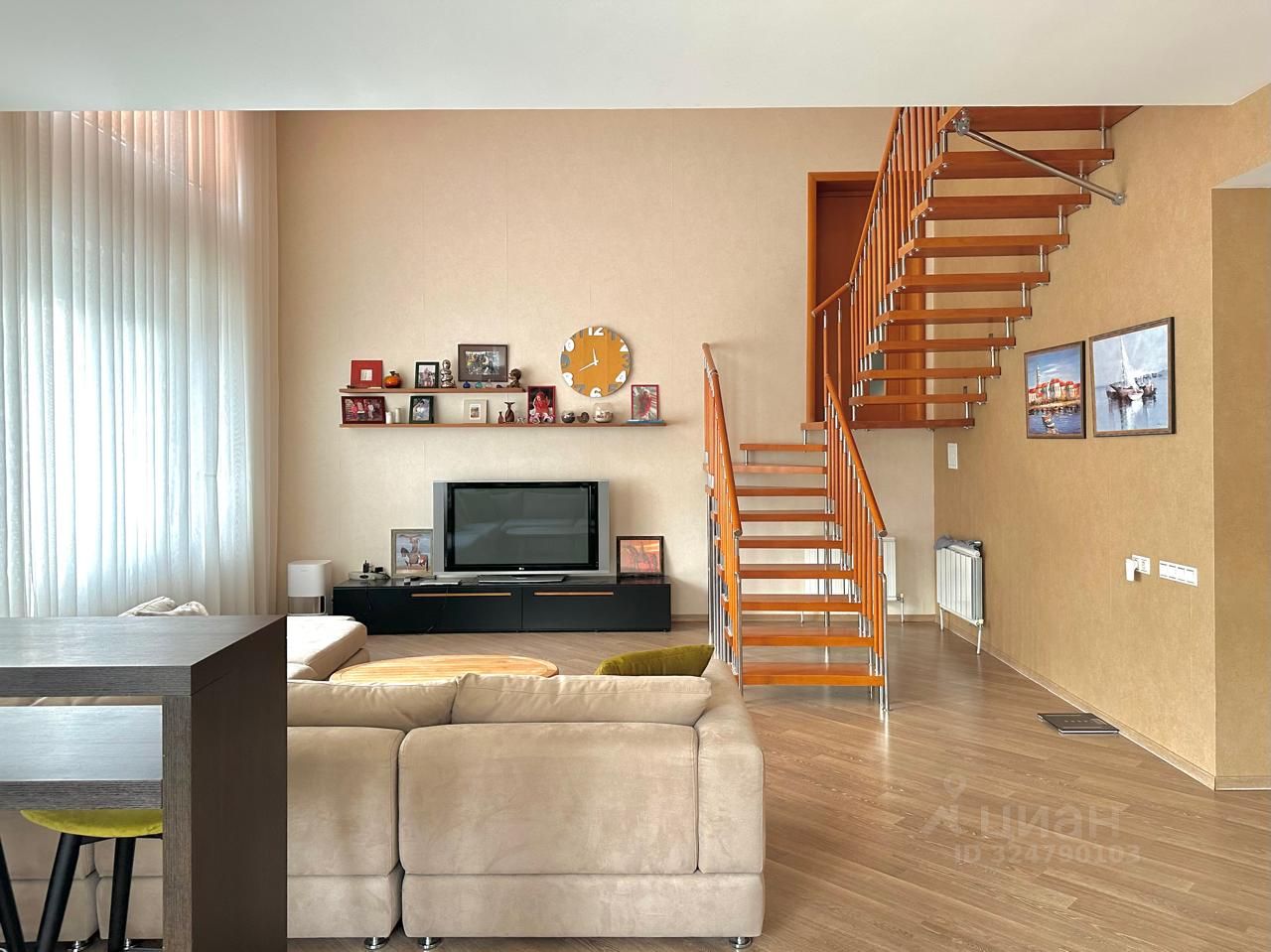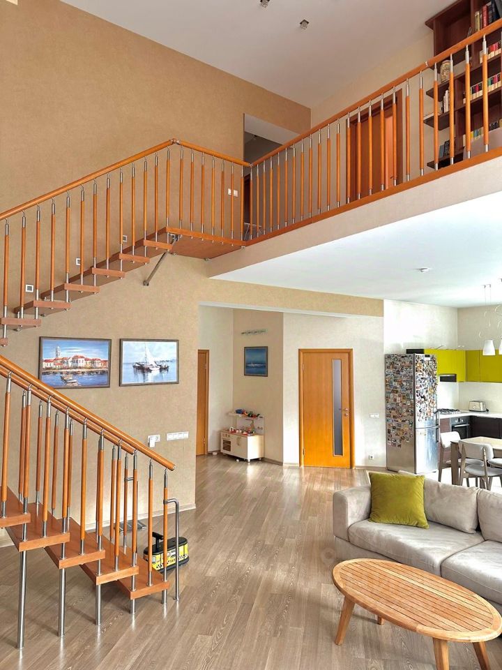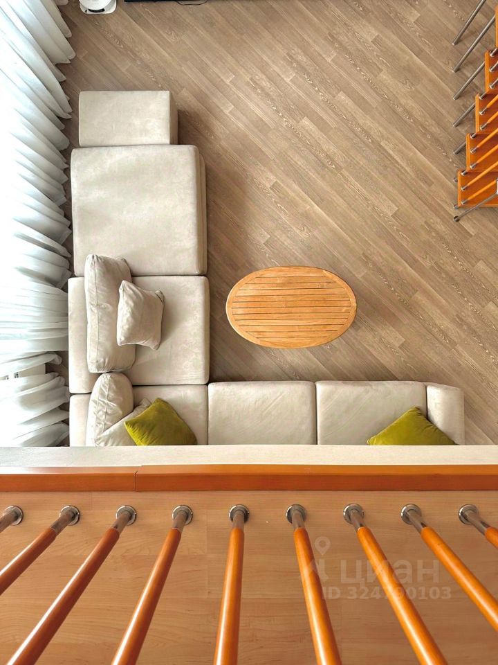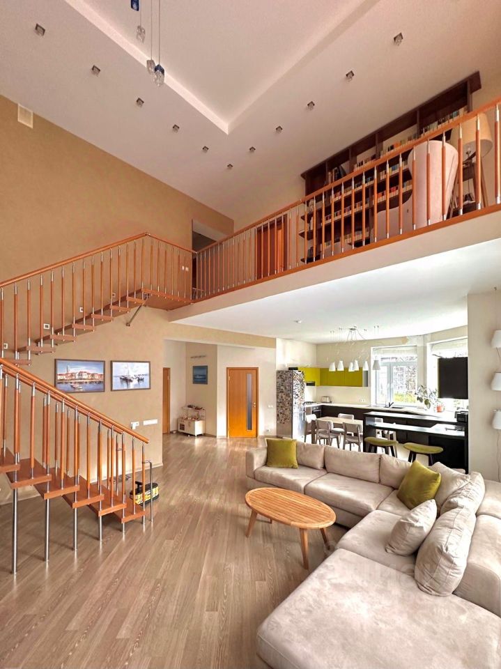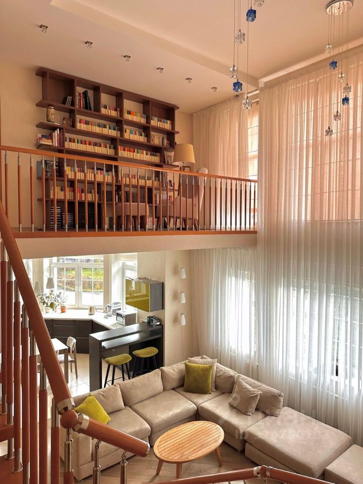 Между этажами над террасой спальня с балконом на внутренний двор.