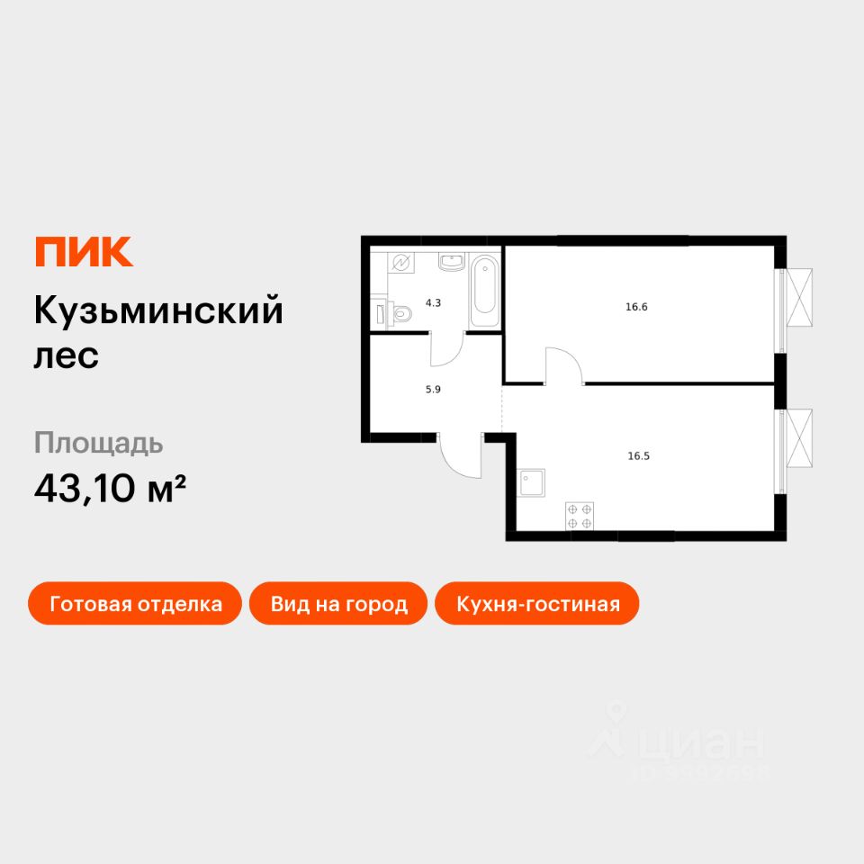 Продаётся 1-комн. квартира площадью 43,1 кв.м на 14 этаже 25 этажного дома (Корпус 9, Секция 1) проекта ПИК Кузьминский лес. Светлый просторный подъезд на уровне земли, функциональная планировка, большие окна, c отделкой.
