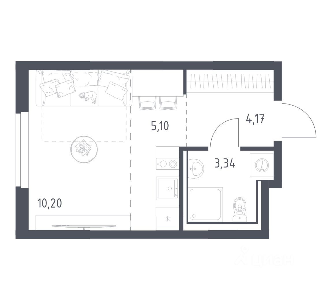 Жилая площадь10,2 м2