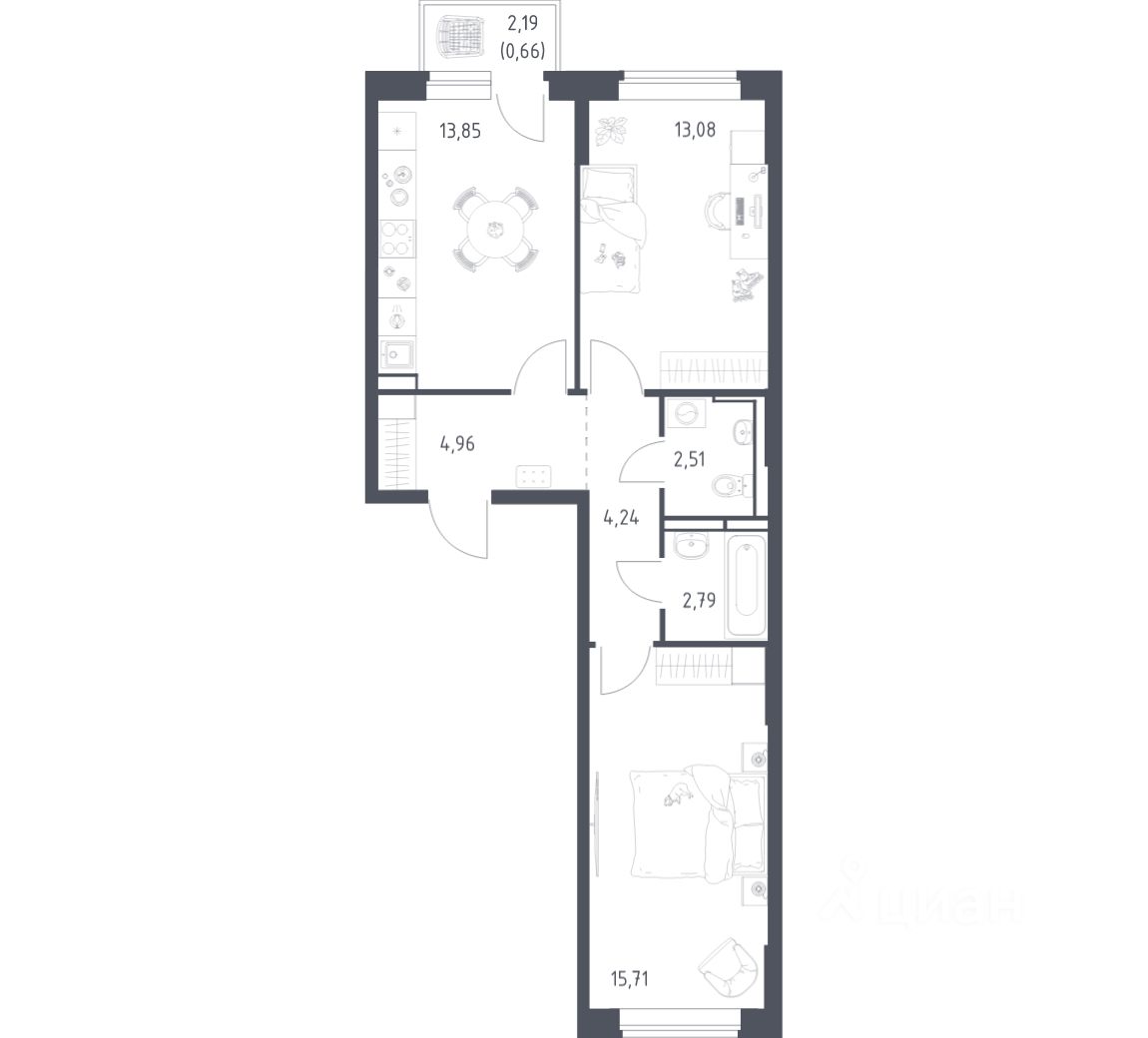 Общая площадь57,8 м2