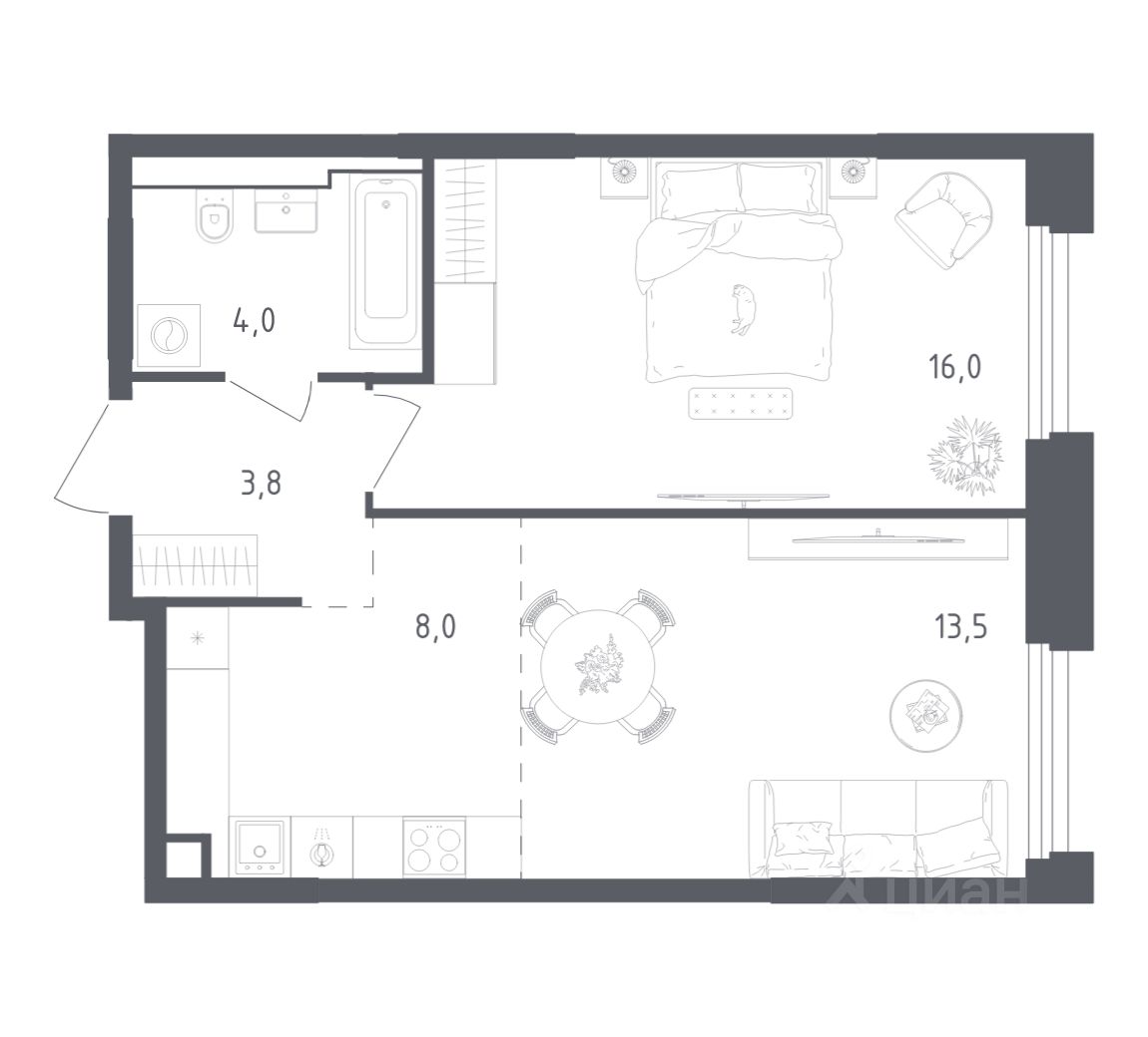 Строим кварталы для жизни с заботой о будущем. Предлагается 1-комнатная квартира бизнес-класса площадью 43,9 кв.м в корпусе 3.1 на 2-м этаже, в жилом комплексе ''Заречье Парк''.
