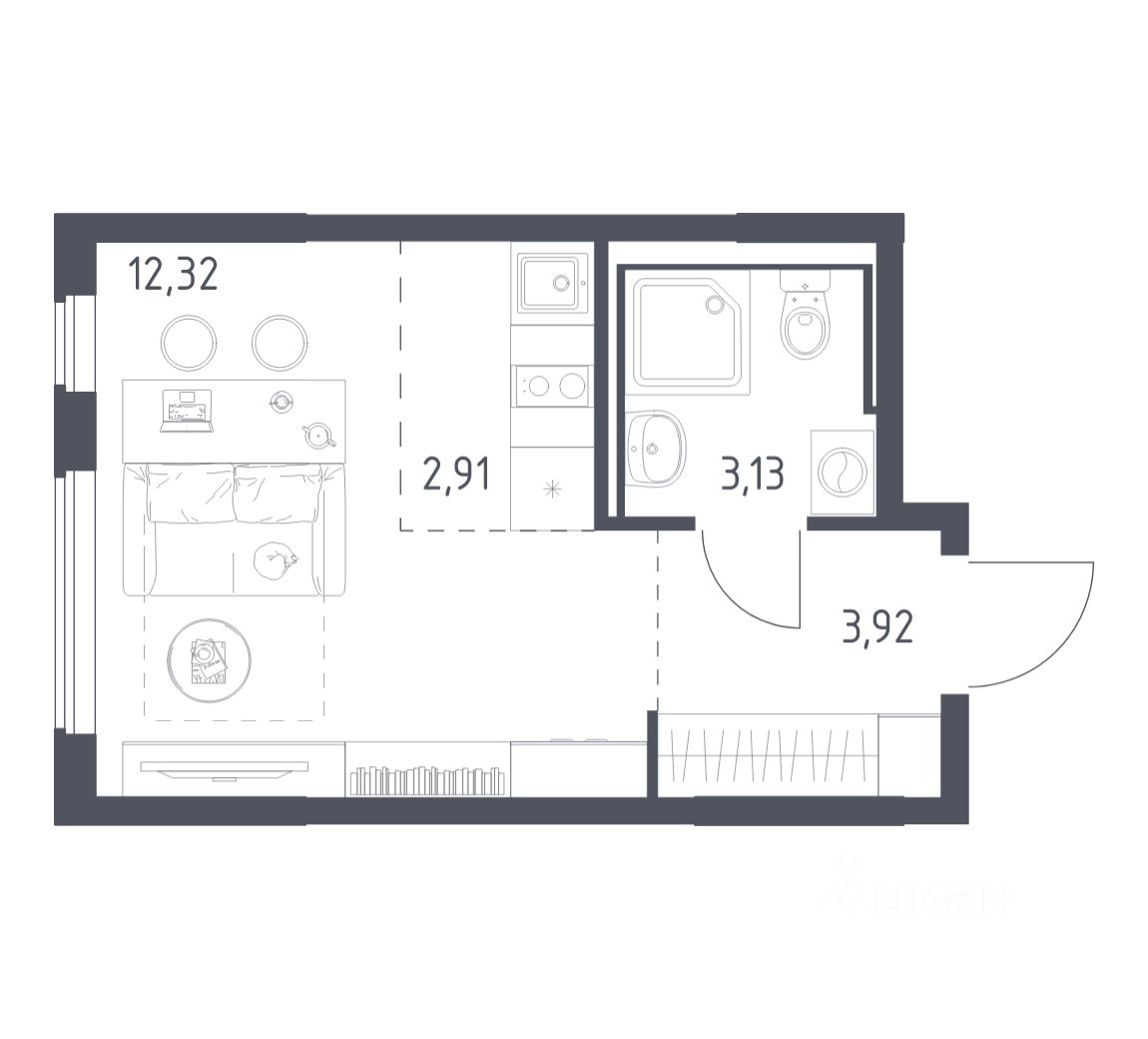 Жилая площадь12,3 м2