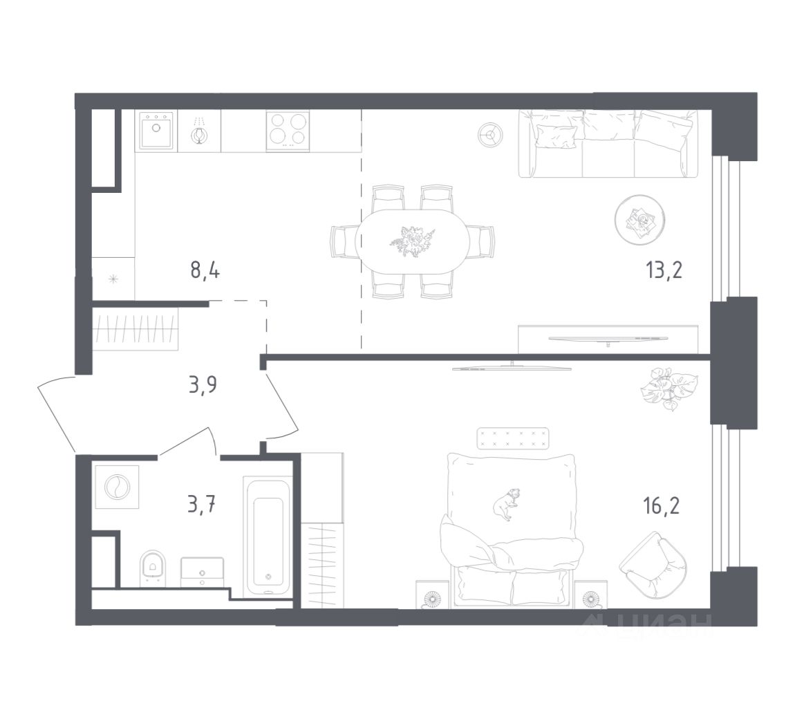 Строим кварталы для жизни с заботой о будущем. Предлагается 1-комнатная квартира бизнес-класса площадью 44,4 кв.м в корпусе 3.1 на 8-м этаже, в жилом комплексе ''Заречье Парк''.