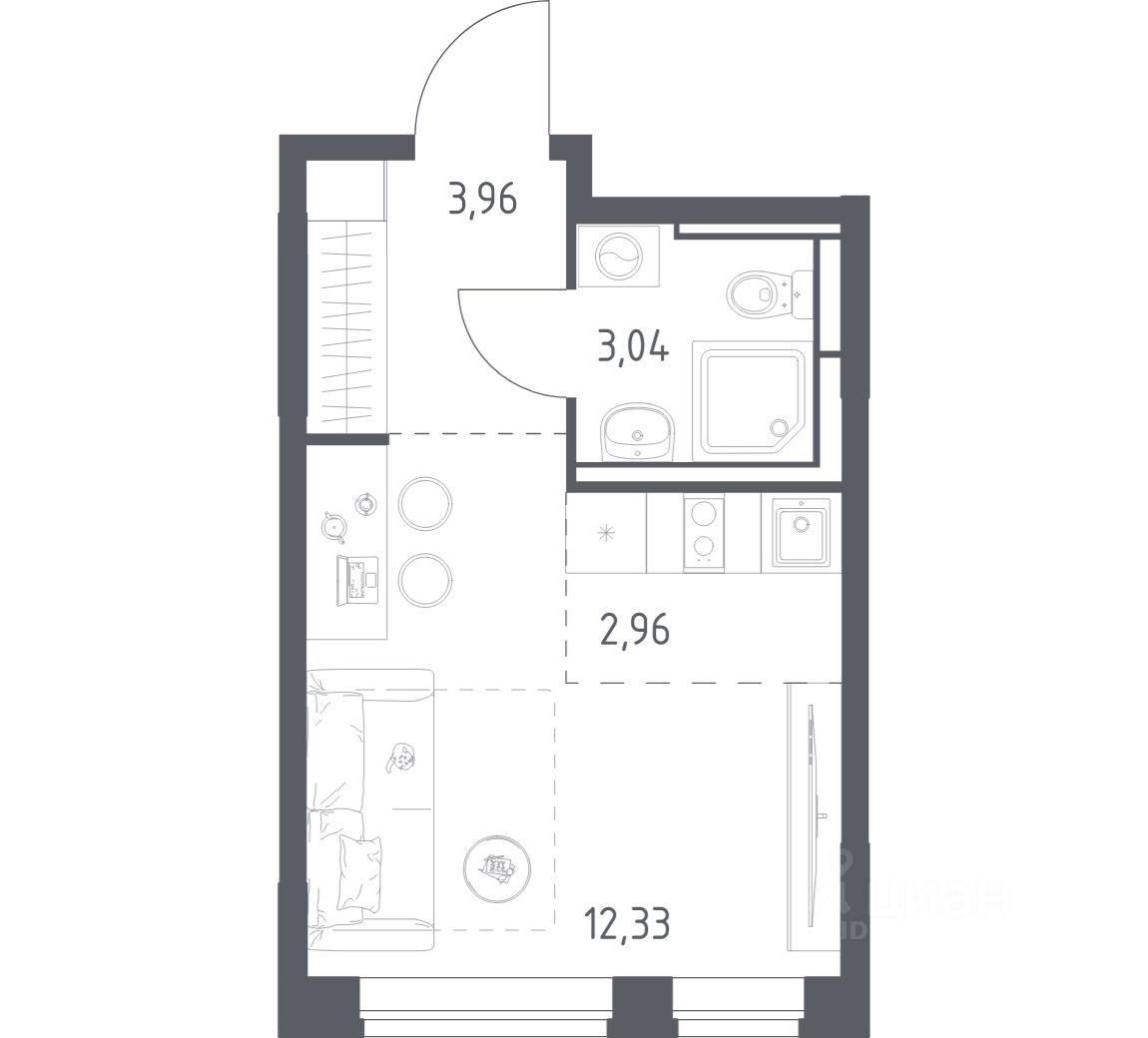 Общая площадь22,29 м2