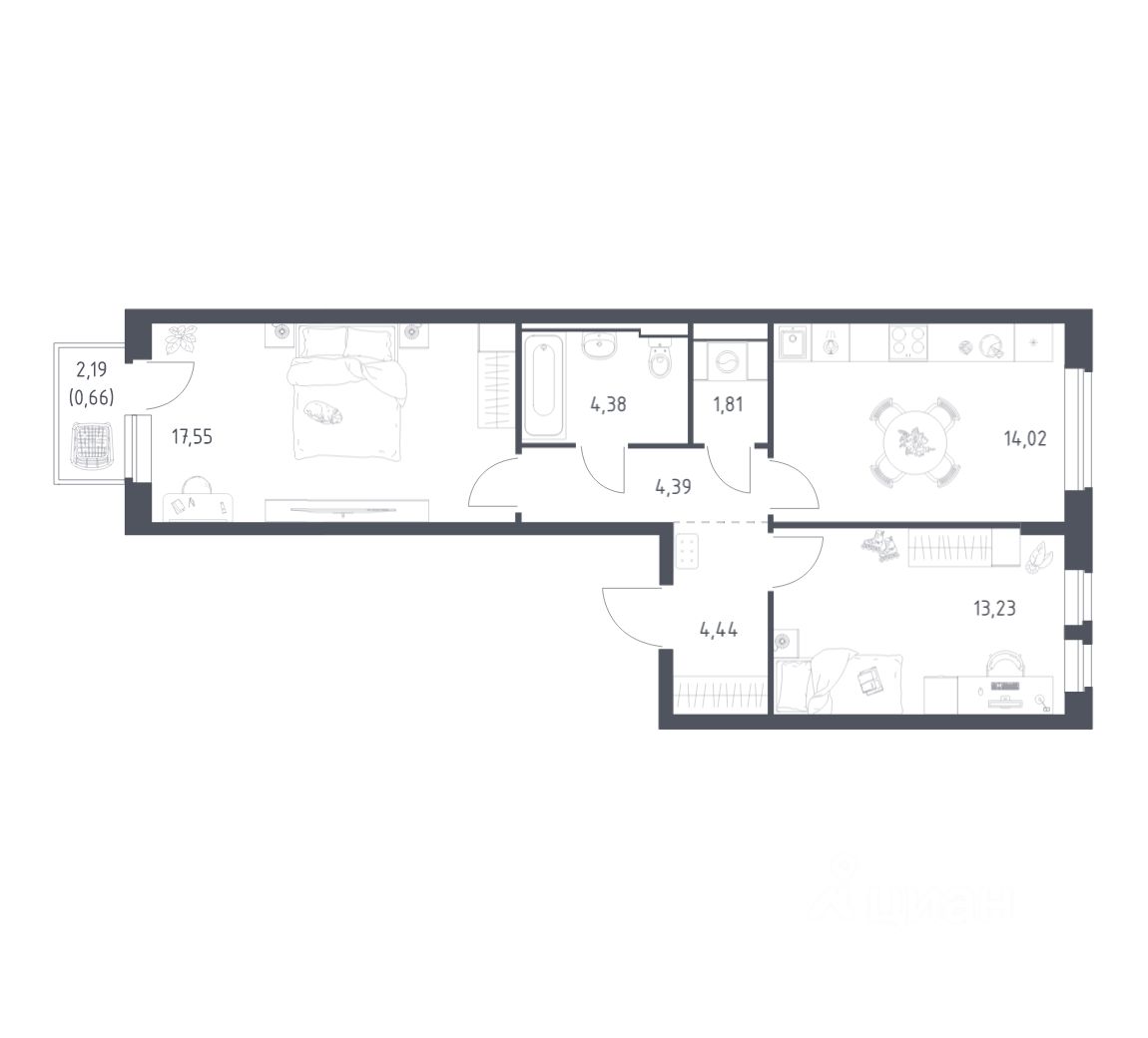Строим кварталы для жизни с заботой о будущем. Предлагается 2-комнатная квартира комфорт-класса площадью 60,48 кв.м в корпусе 17 на 7-м этаже, в жилом комплексе ''Новое Видное''.