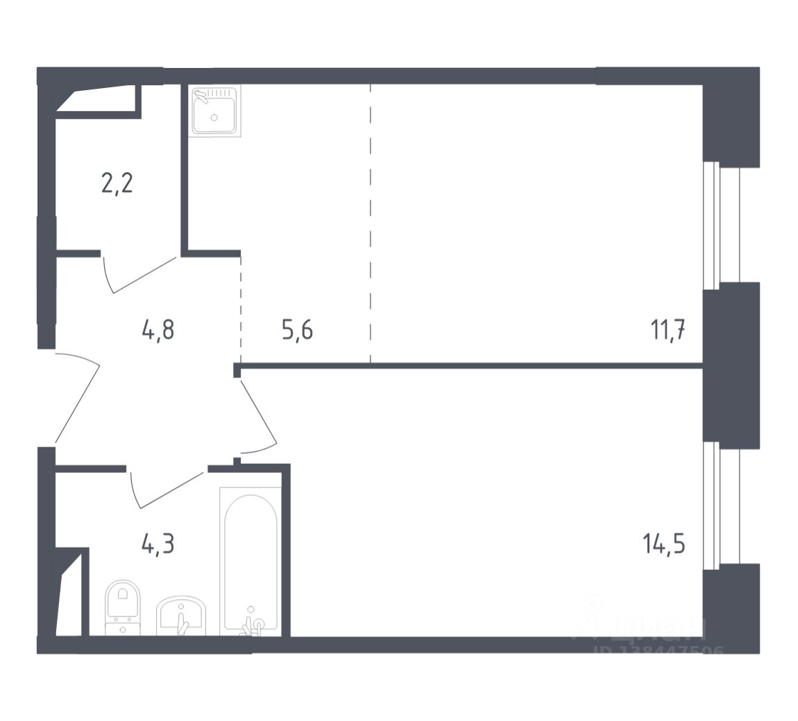 Строим кварталы для жизни с заботой о будущем. Предлагается 1-комнатная квартира бизнес-класса площадью 42,6 кв.м в корпусе 2.1 на 6-м этаже, в жилом комплексе ''Заречье Парк''.