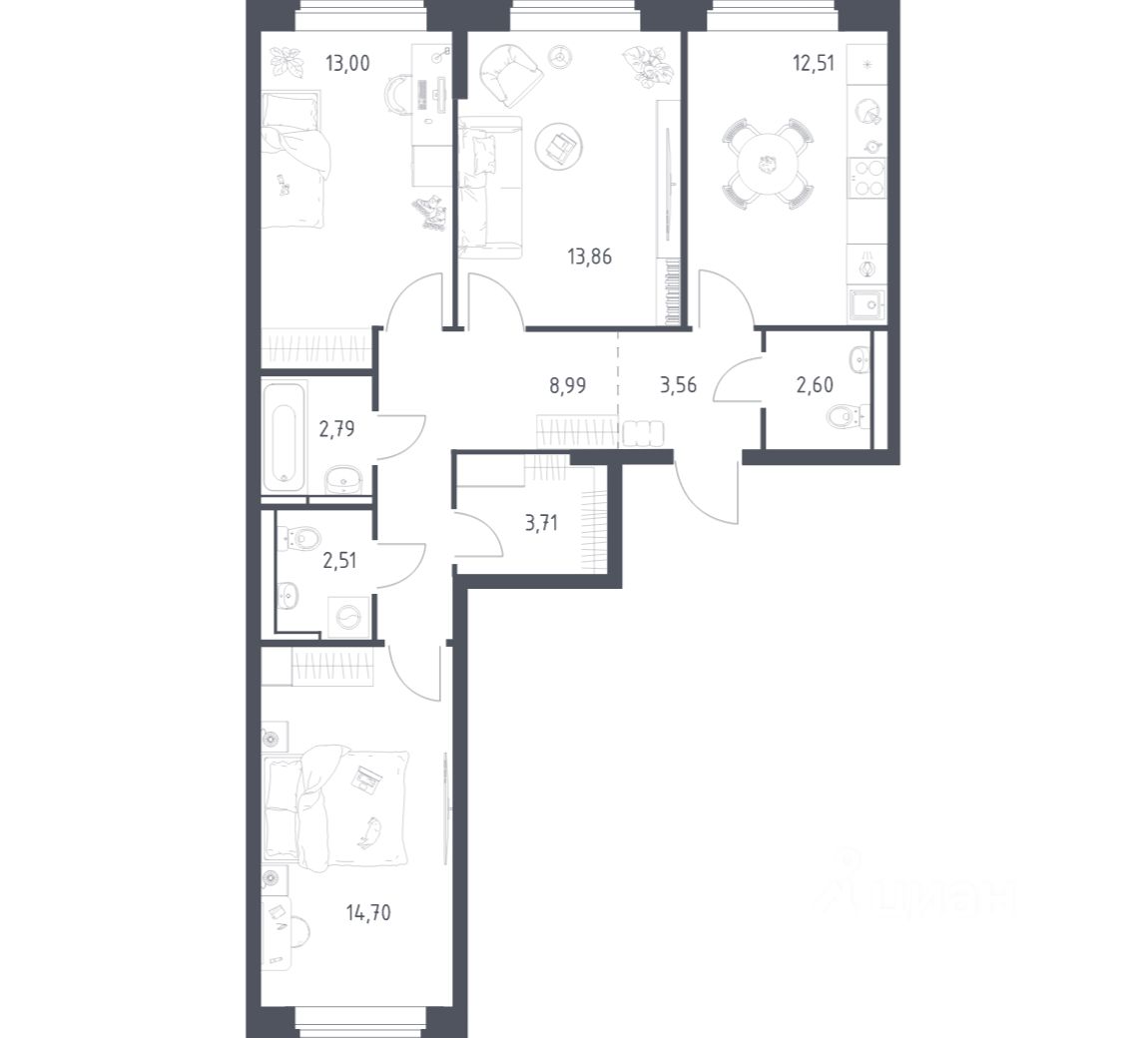 Застройщик сдает квартиры с отделкой в нескольких вариантах: предчистовая, готовая, улучшенная. Если не хочется тратить время на ремонт, можно выбрать опцию — с отделкой. Перед тем как отдать ключи, застройщик установит натяжные потолки, поклеит обои под покраску, положит ламинат светлых тонов, а в санузлах — керамическую плитку и керамогранит.