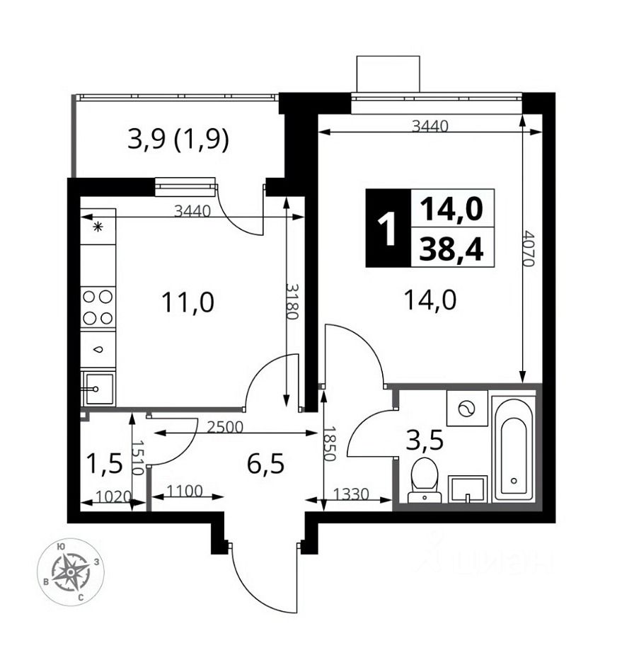 Продаётся однокомнатная квартира с отделкой White Box 38.4 м2 в ЖК ''Первый Южный''. Квартира расположена на 18 этаже 25 этажного дома. Дом введен в эксплуатацию передача ключей по договору до 30 июня 2026 г.