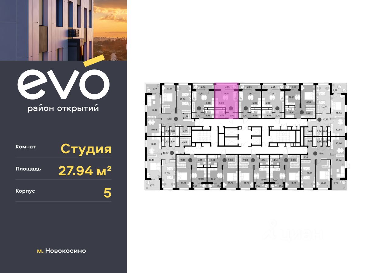 Продается студия 27.94 кв.м. в жилом комплексе EVO на 13 этаже по адресу: Московская область, г. Реутов, ул. Комсомольская. Скидка 10% при полной оплате!* EVO - проект комфорт-класса от девелопера Dogma. Каждый житель сможет открыть для себя максимум возможностей. Совершенствоваться во всех направлениях: физическом, эмоциональном и материальном. В EVO можно открыть для себя новые виды спорта, найти единомышленников по хобби, партнеров по бизнесу, развивать в детях новые грани, наслаждаться природой и лаконичной архитектурой.