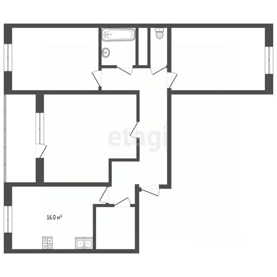 Трехкомнатная квартира площадью 75 кв. м в ЖК ''Завидное'' предлагает рациональную планировку распашного типа, где три изолированные комнаты обеспечивают приватность для всех членов семьи.