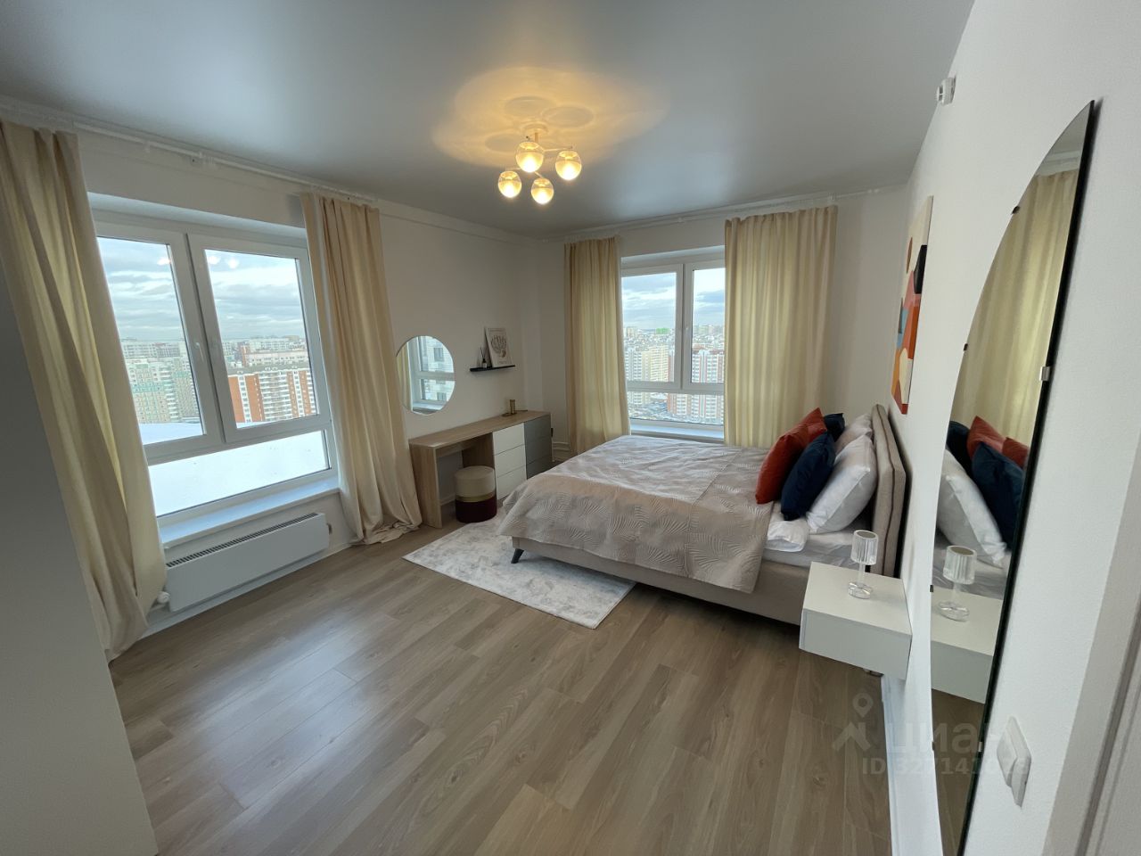 4 комнаты (кухня + гостиная, три спальни), два санузла